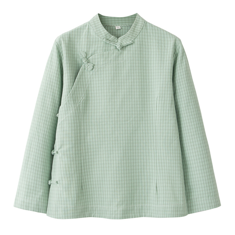 女中国风斜襟长袖圆领休闲风上衣