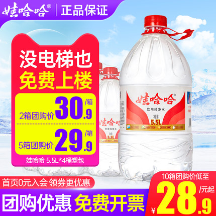 娃哈哈纯净水5.5L*4桶整箱特价家庭大瓶聪明盖饮用水非5升矿泉水