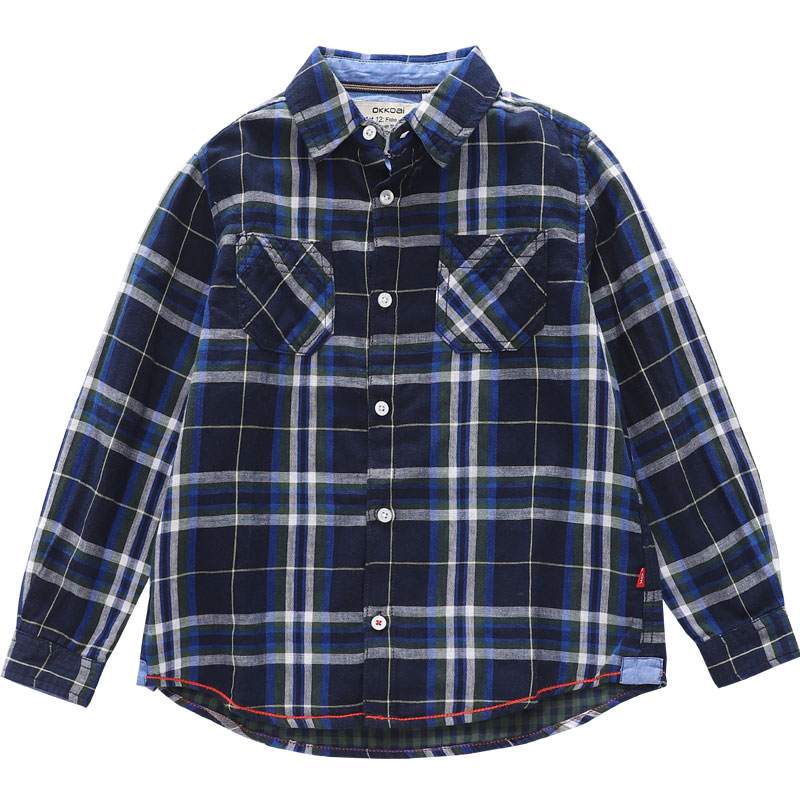 男童格子长袖衬衫2023春秋儿童纯棉纱翻领上衣中大童百搭休闲衬衣