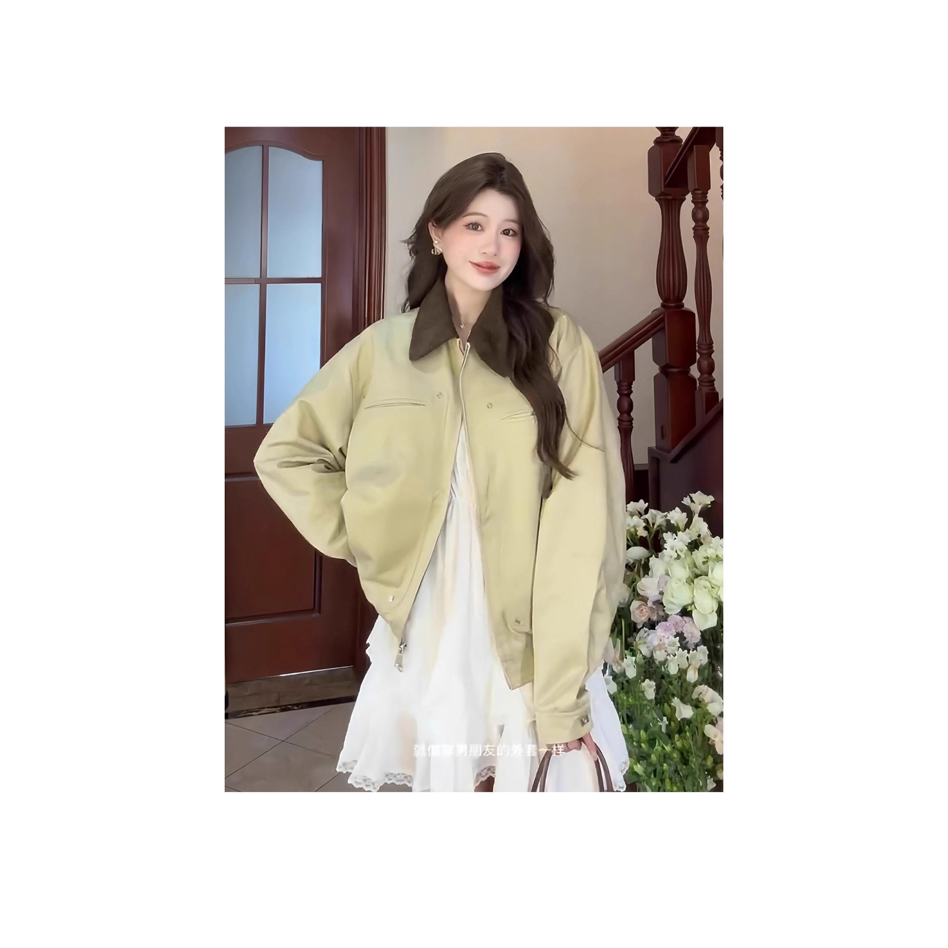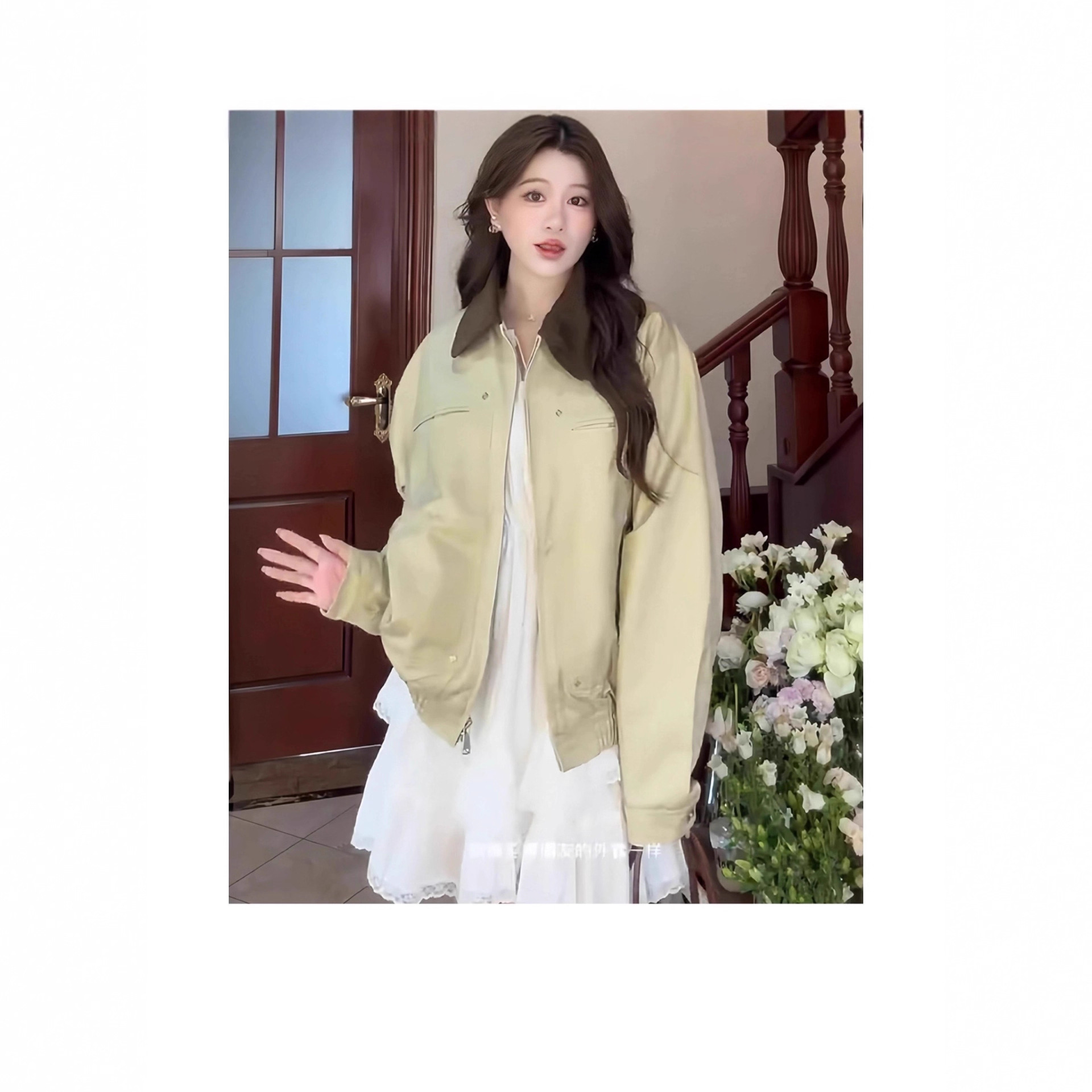 美式复古拼色翻领外套女秋季2025新款休闲宽松男女棒球服夹克