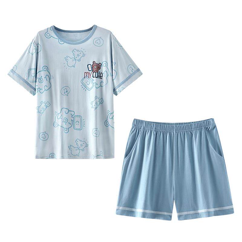 秋鹿【断码清仓】睡衣女夏季短袖七分裤薄款夏天家居服男款套装