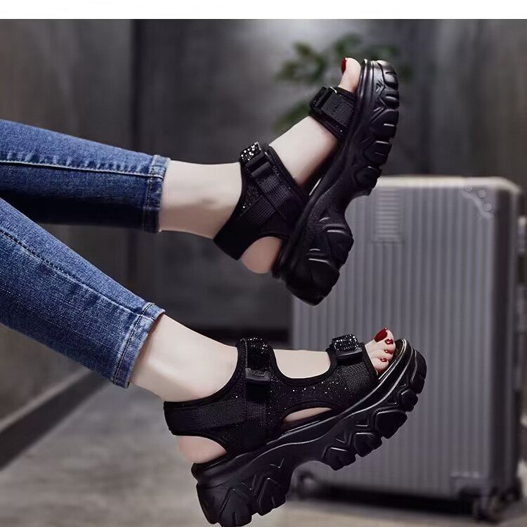 爆款老爹凉鞋女2025年新款夏季百搭厚底松糕鞋高跟运动罗马