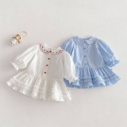 衬衫裙春季刺绣儿童洋气娃娃领女童潮新款连衣裙裙子2026宝宝韩版