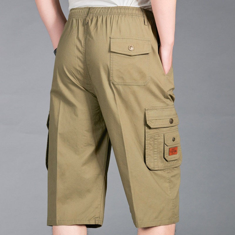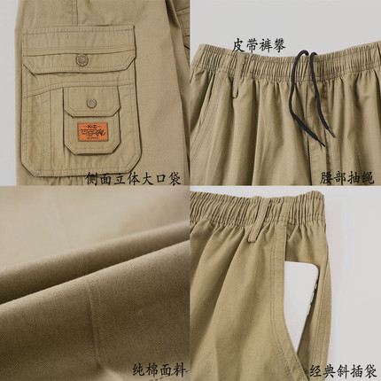 中老年纯棉男七分裤宽松高腰爷爷中裤夏季爸爸松紧腰工装裤男短裤