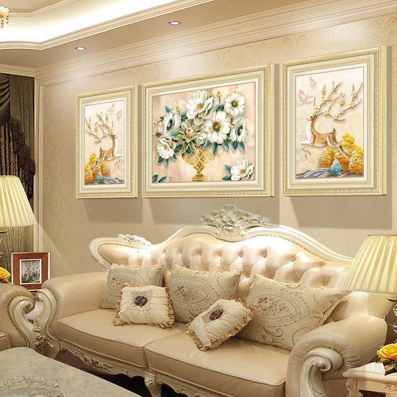 欧式客厅装饰画沙画发背厅画ZU367-2景简欧大气挂画麋鹿墙晶瓷餐