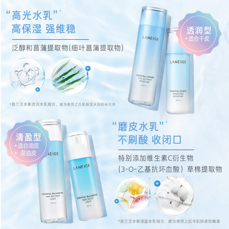 韩国兰芝水乳水库凝肌2件套装补水保湿滋润清爽护肤水乳护肤套装
