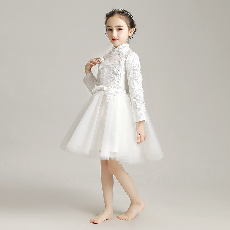 儿童晚礼服公主裙婚纱女童长袖高贵小花童婚礼加绒白色洋气高端夏