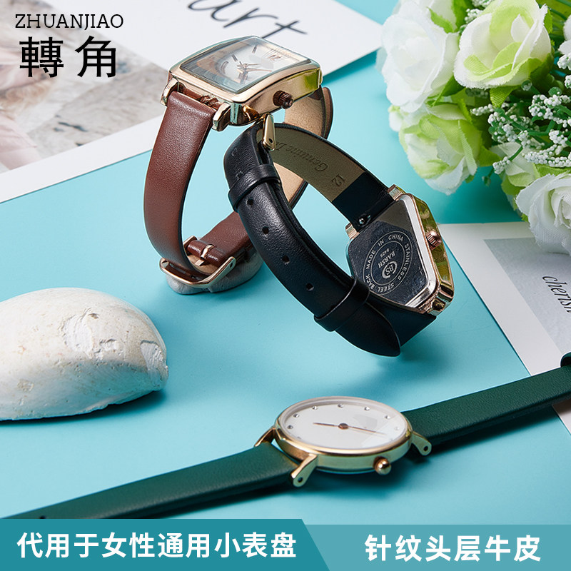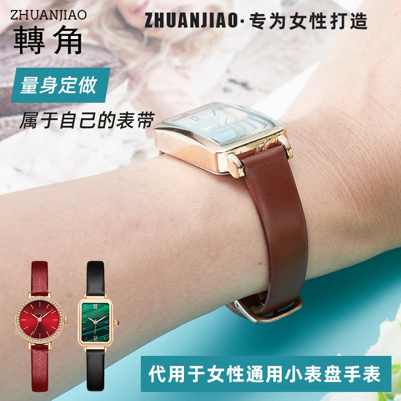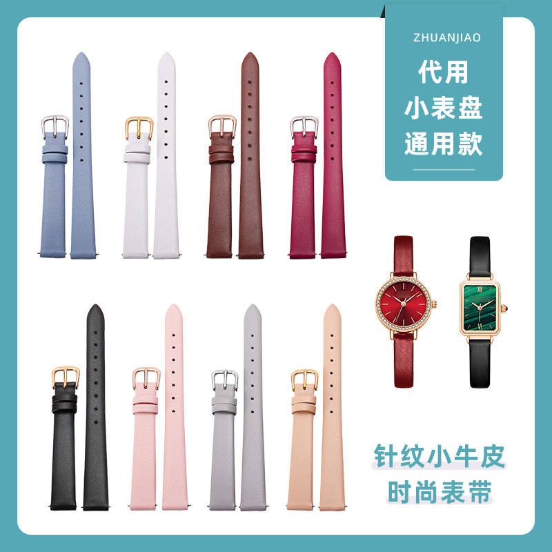 手表带女小绿表真皮 适配dw细表链马克华菲 阿玛尼CK小尺寸细表带