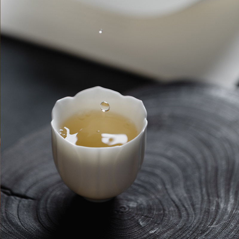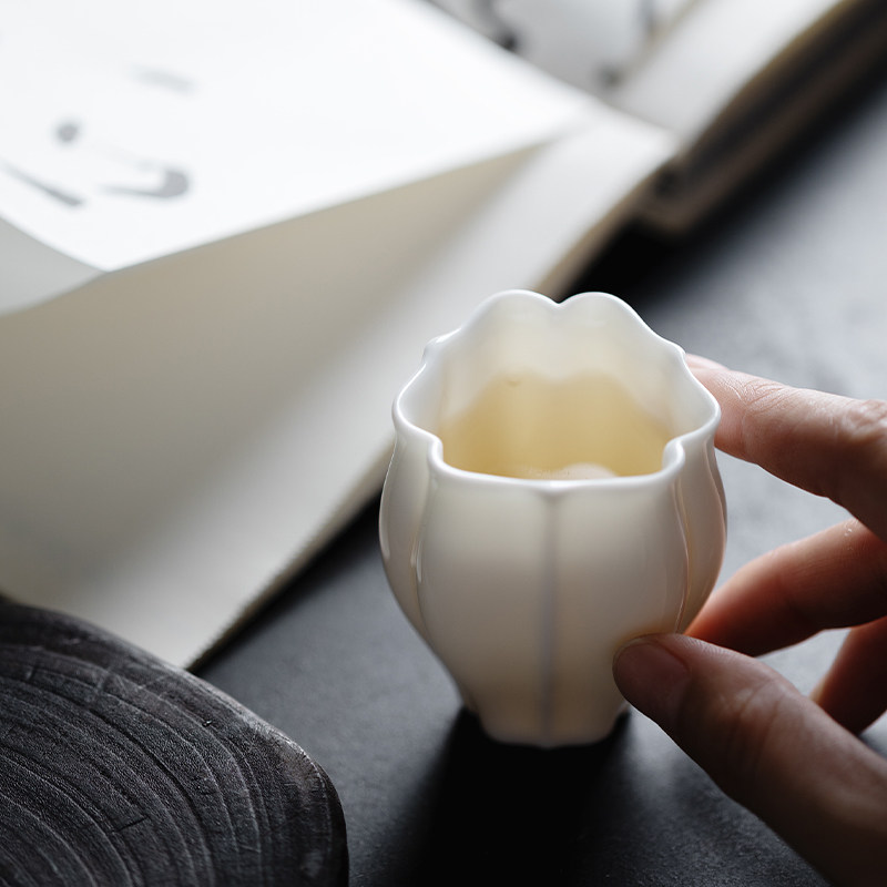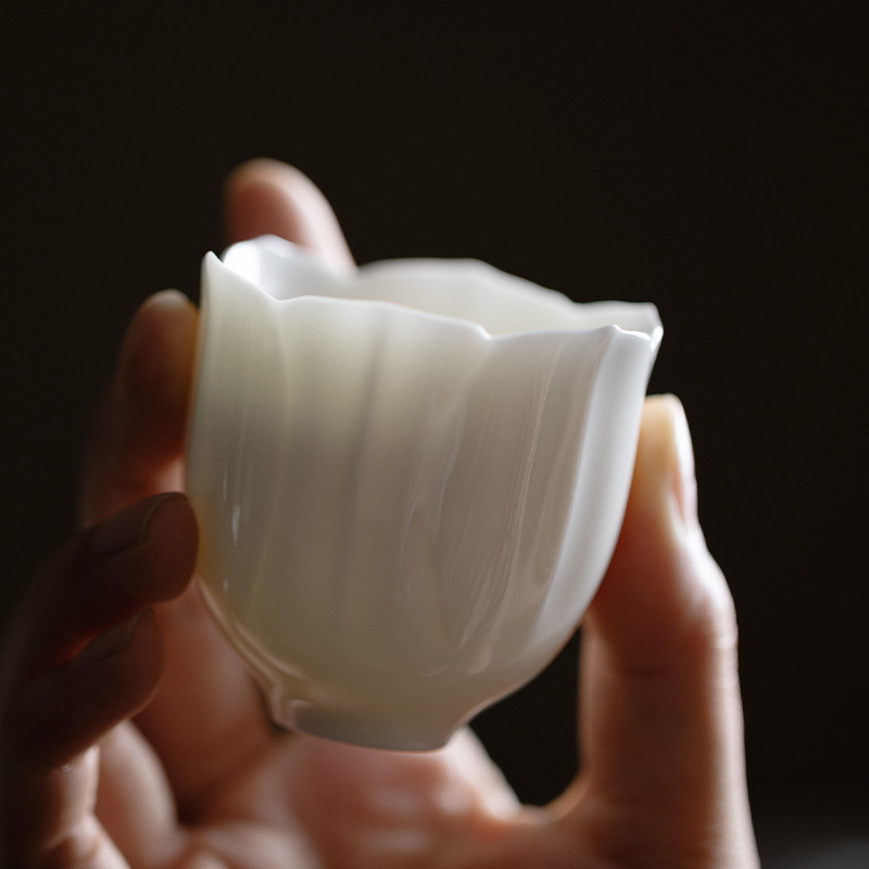繁野羊脂玉瓷玉泥花边口主人茶杯高端透明白瓷品茗杯个人杯单杯