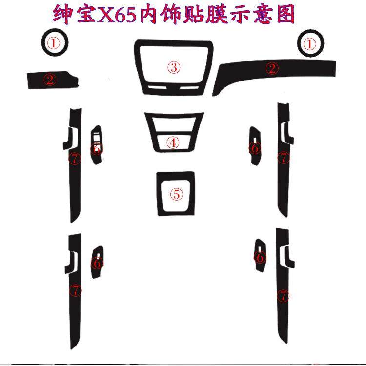 适用于北汽绅宝X65内饰贴纸碳纤维装饰威旺S50中控台改色改装贴膜