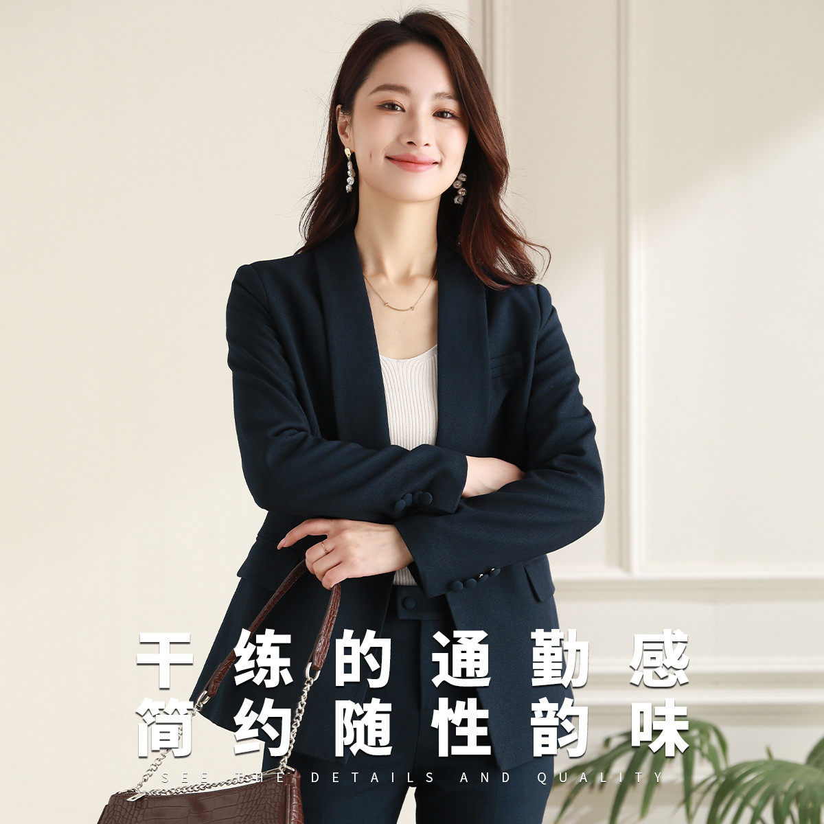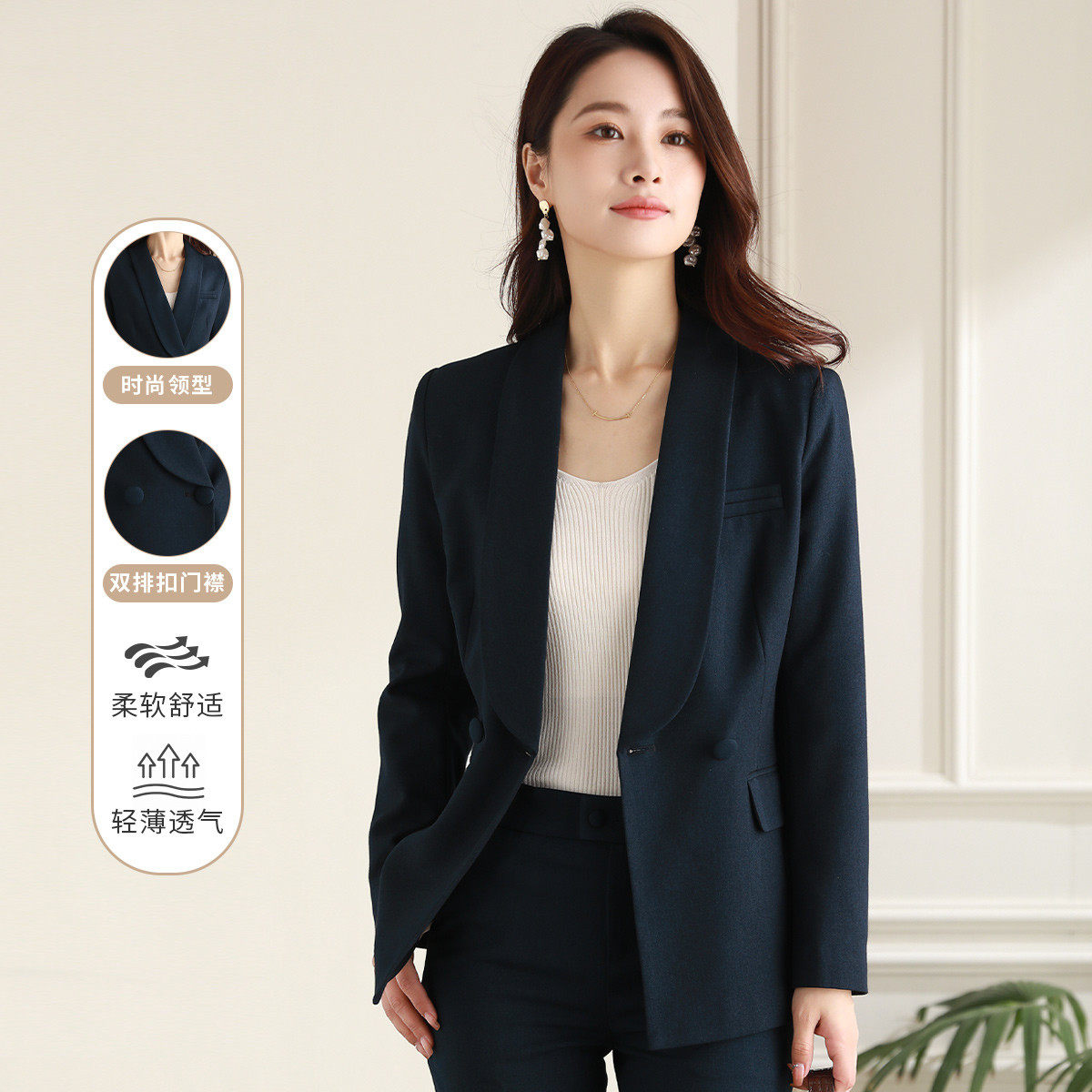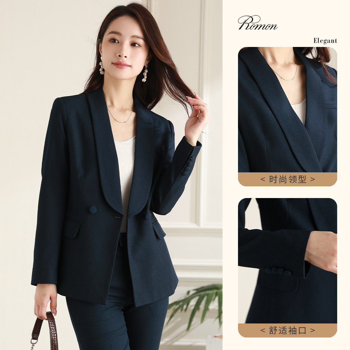 罗蒙春秋小西装外套女士青果领双排扣通勤休闲百搭单西服上衣外套