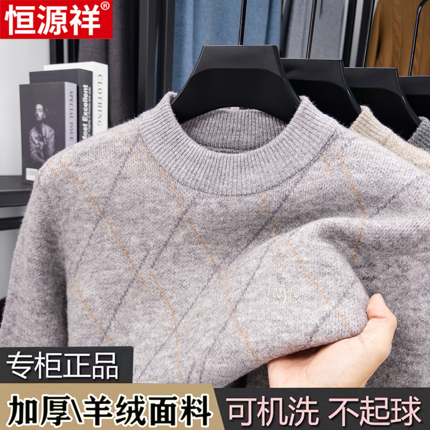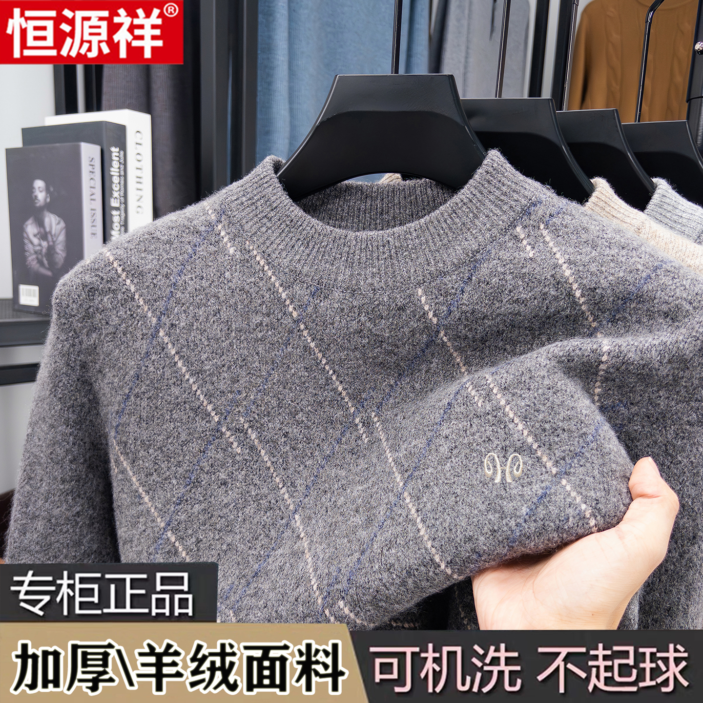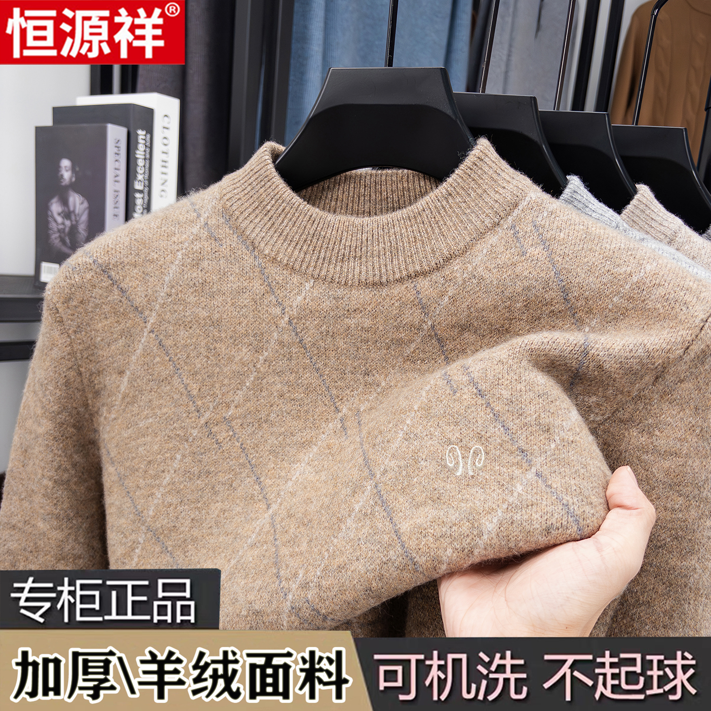 恒源祥羊绒衫男半高领冬季加厚保暖针织打底毛衣中年爸爸装羊毛衫