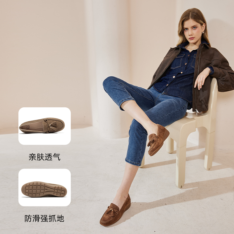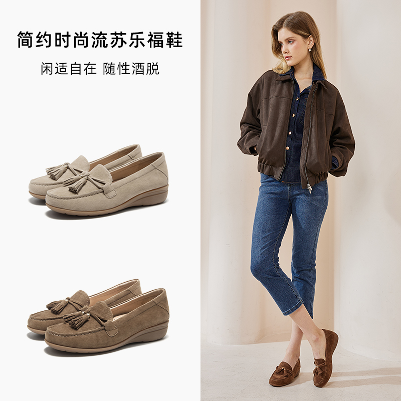 【商场同款】复古英伦风乐福鞋女2025新款秋季一脚蹬平底豆豆单鞋