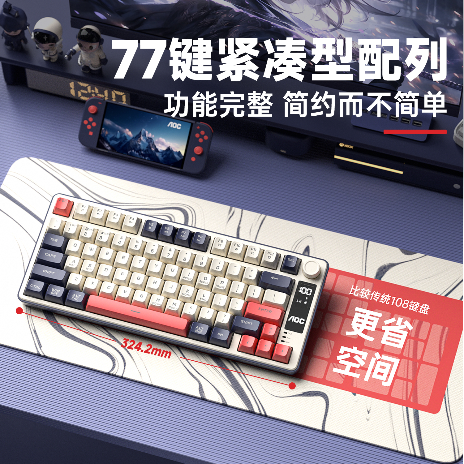AOC GK300无线键鼠套装三模键盘机械手感电竞游戏电脑办公RGB带屏