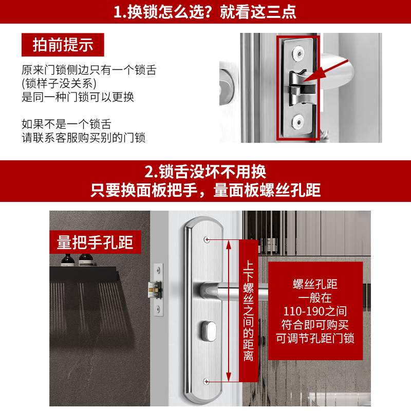 卡贝可调节款卫生间门锁家用通用型浴室把手厕所洗手间铝合金锁具