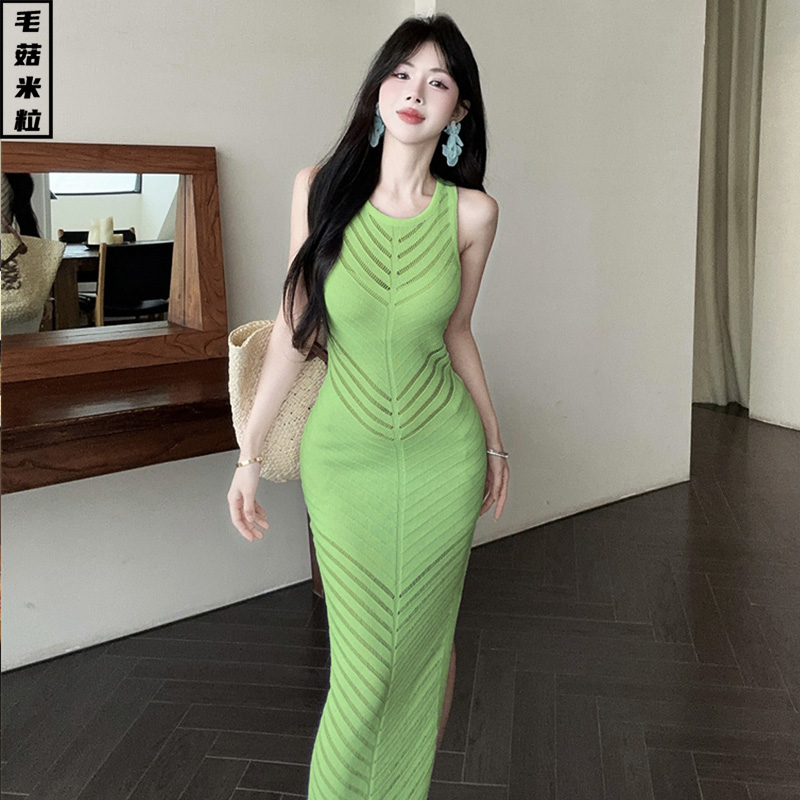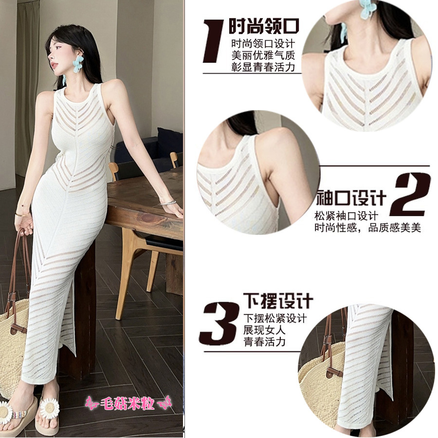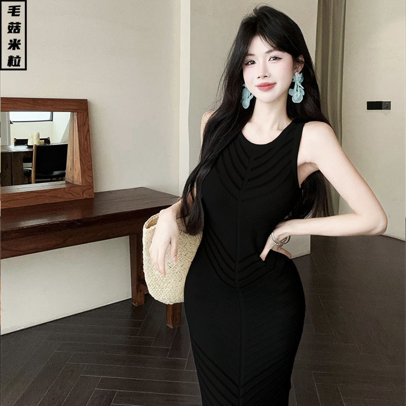 冰丝针织无袖连衣裙女夏季轻奢高级感法式名媛气质修身长款背心裙