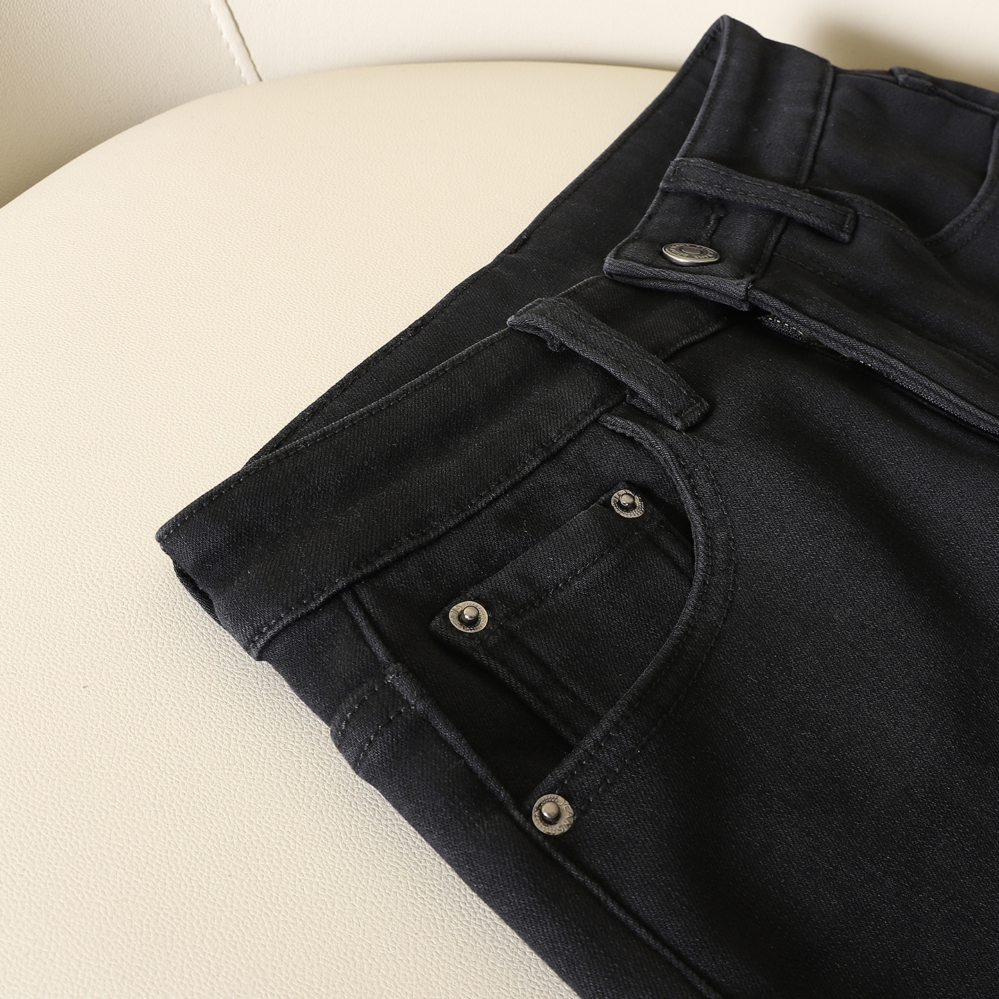 拉夏贝尔加绒高腰弹力微喇牛仔裤