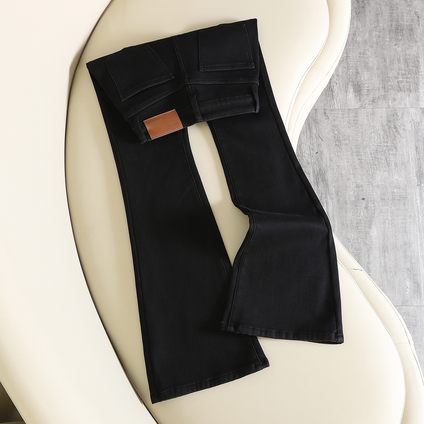 拉夏贝尔加绒高腰弹力微喇牛仔裤女2025秋冬新款显瘦喇叭马蹄裤子