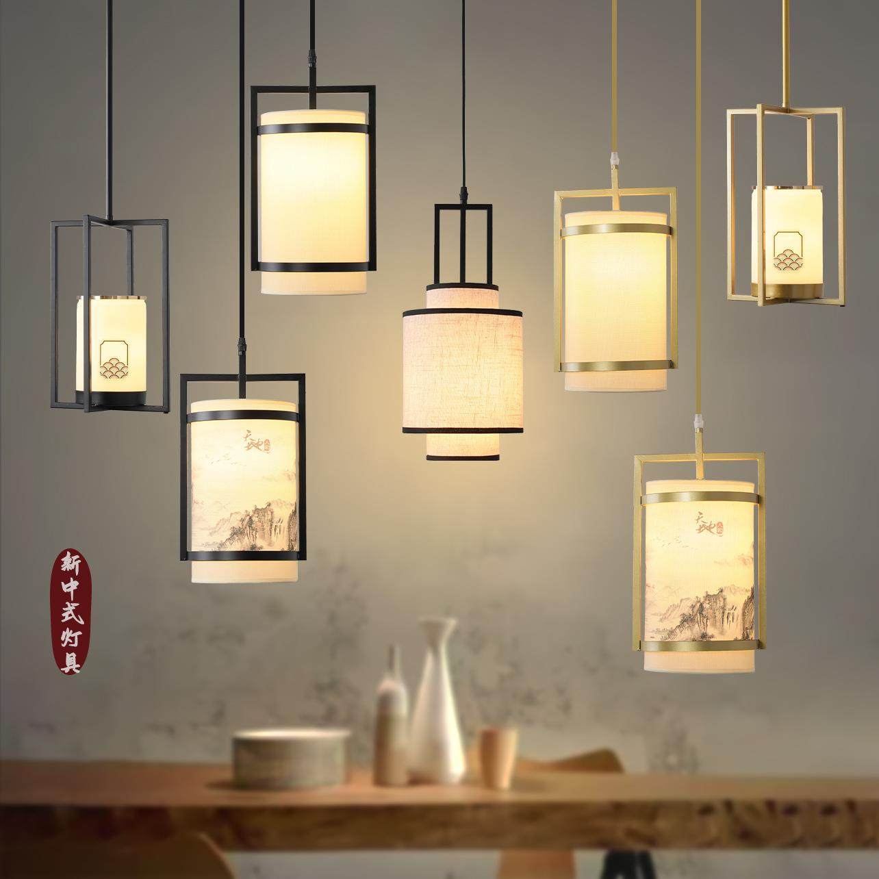 新中式餐厅吊灯玄关吧台单头单吊铁艺简约仿古客房床头餐吊三头灯
