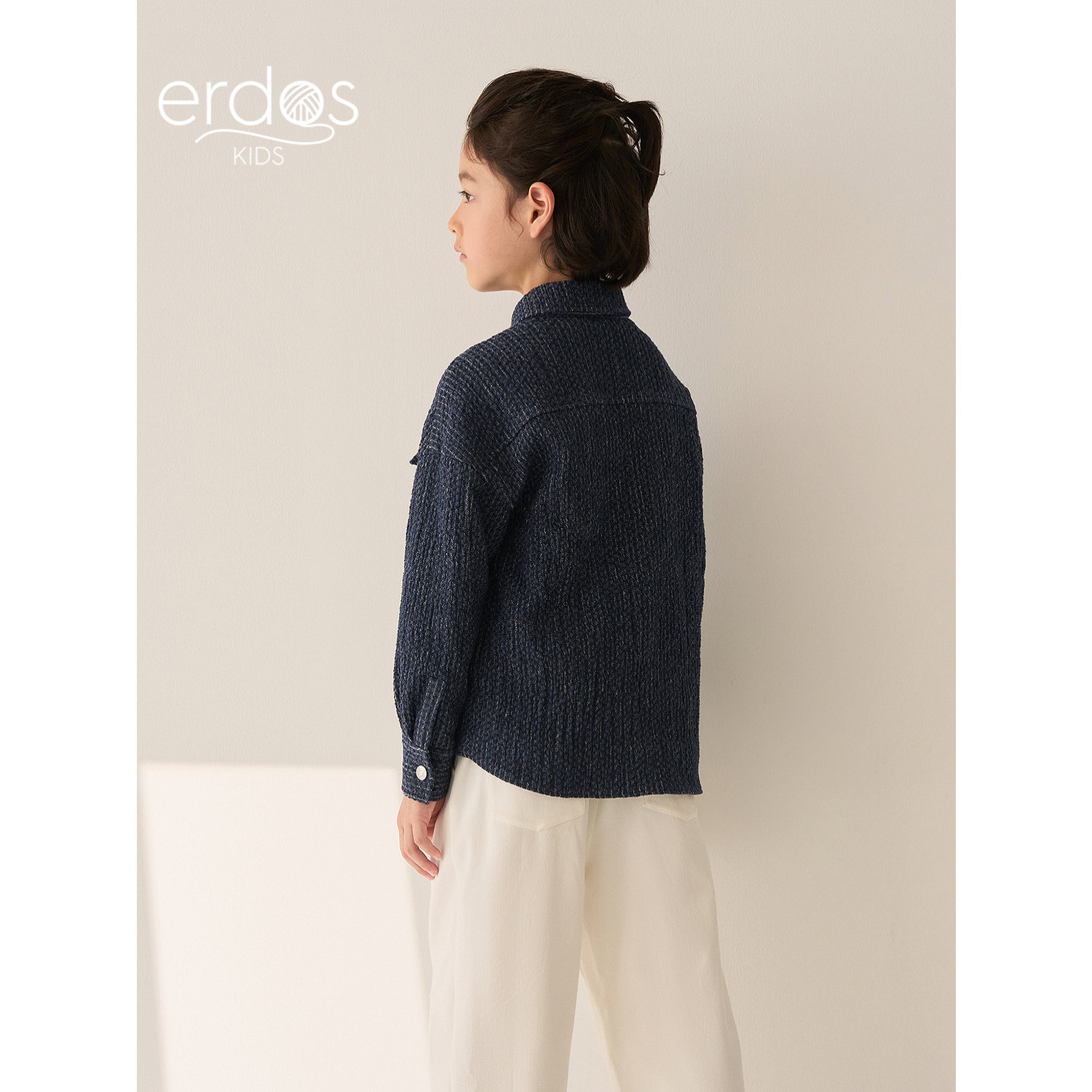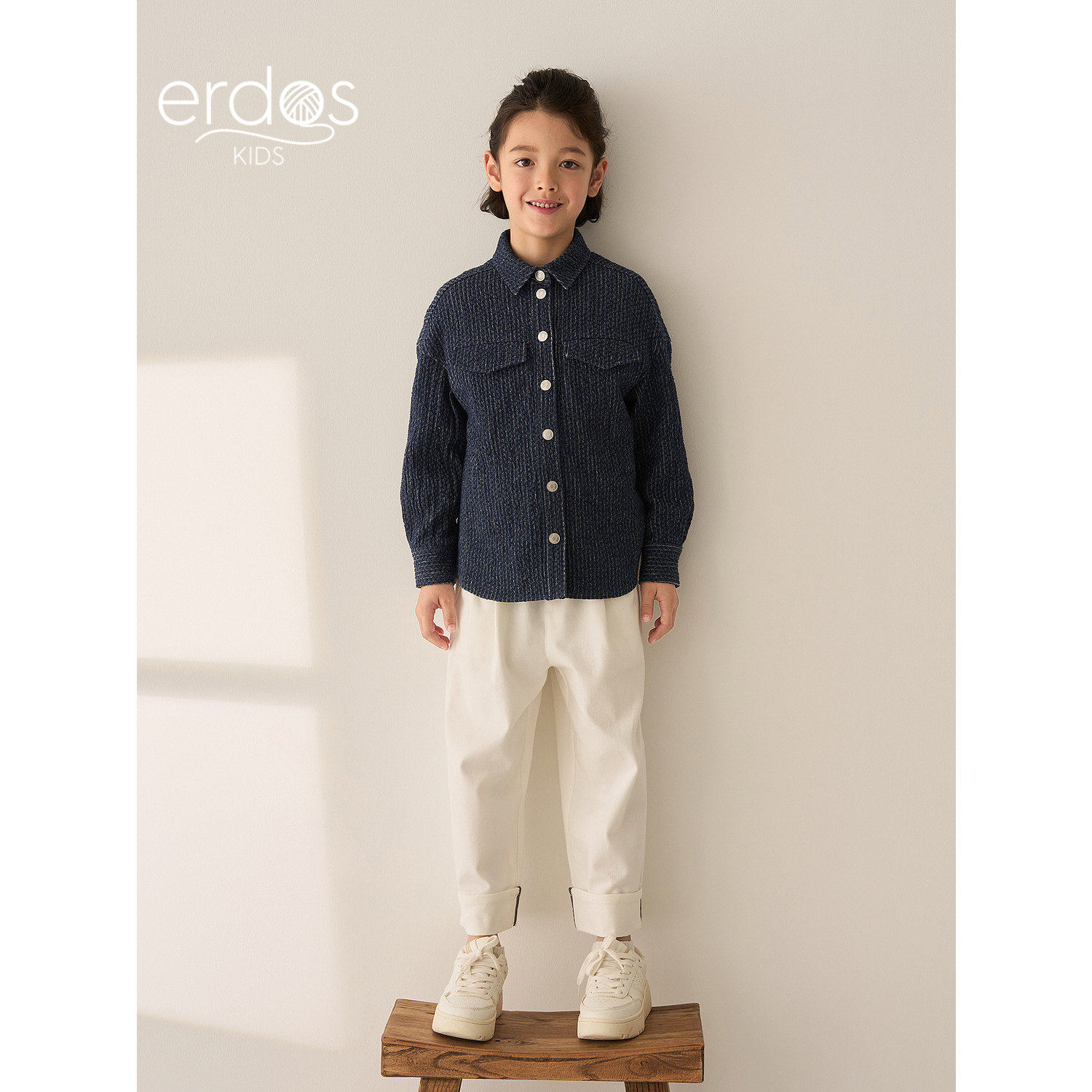 儿童牛仔蓝简约棉麻衬衣式外套休闲衬衫鄂尔多斯童装