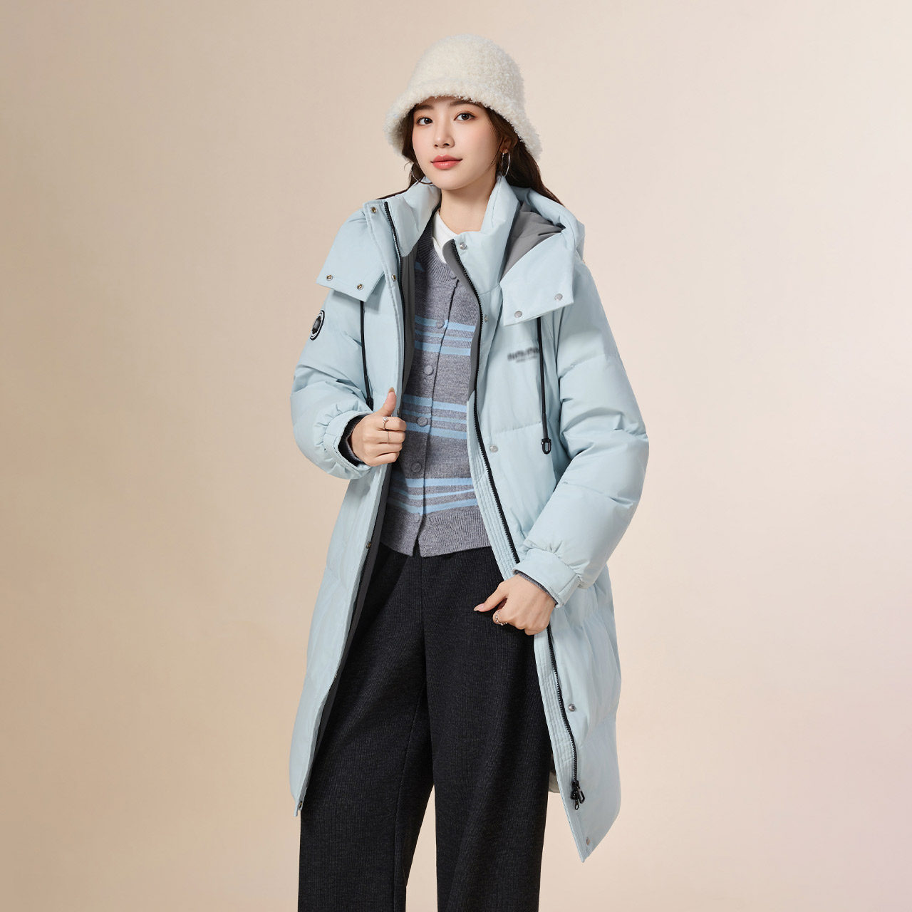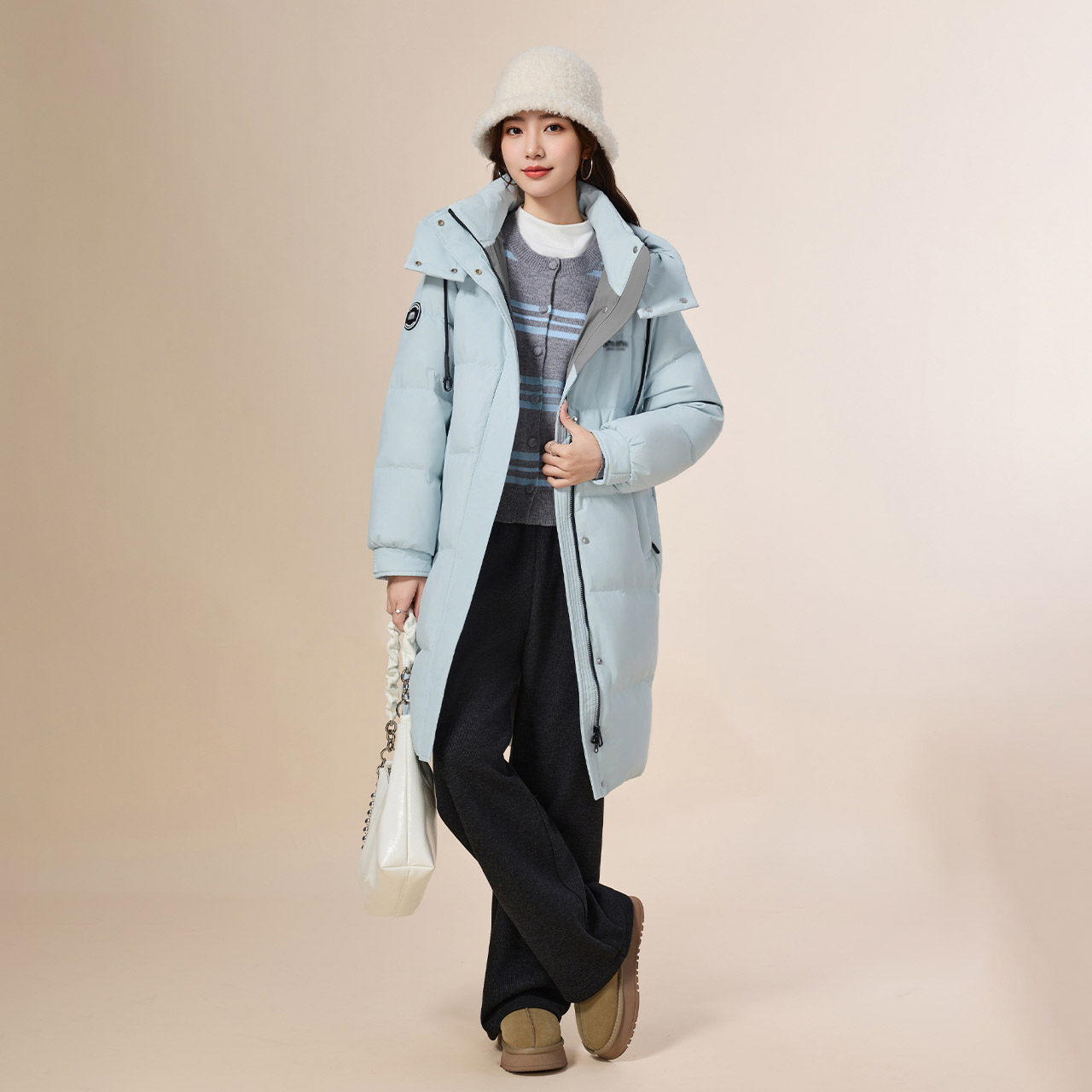 IEF/爱依服2025冬季新款韩版时尚休闲通勤气质白鸭绒羽绒中长外套