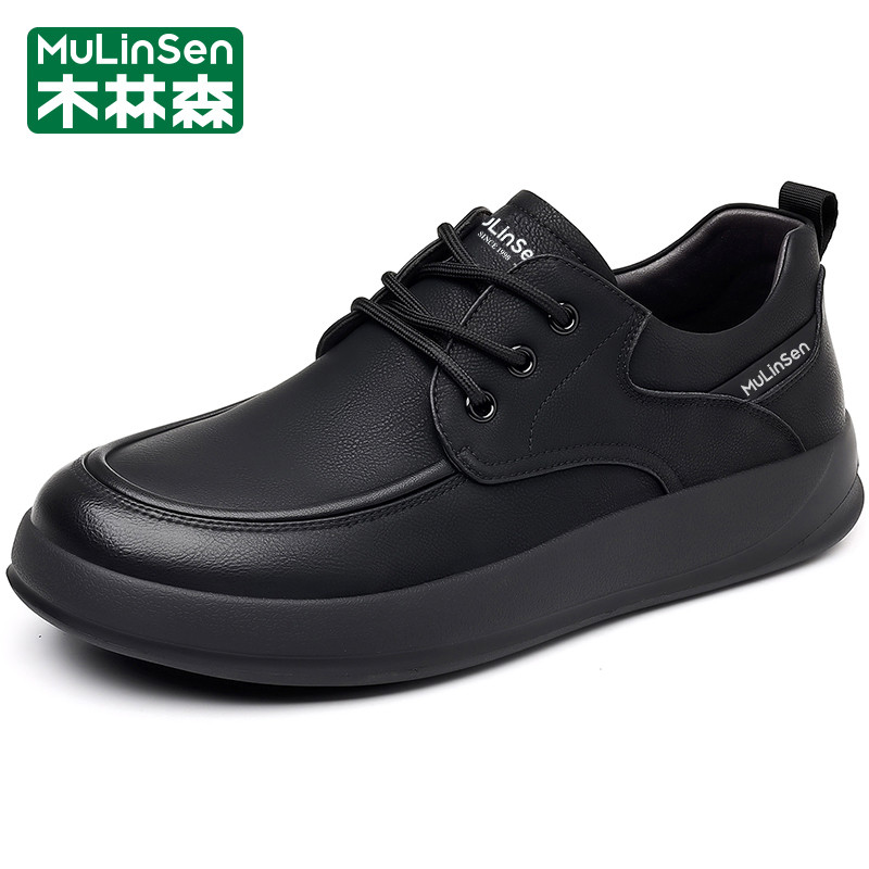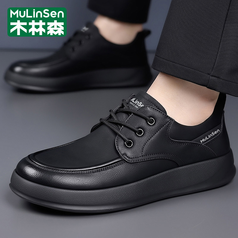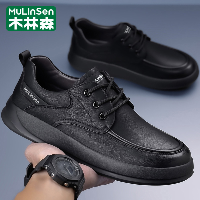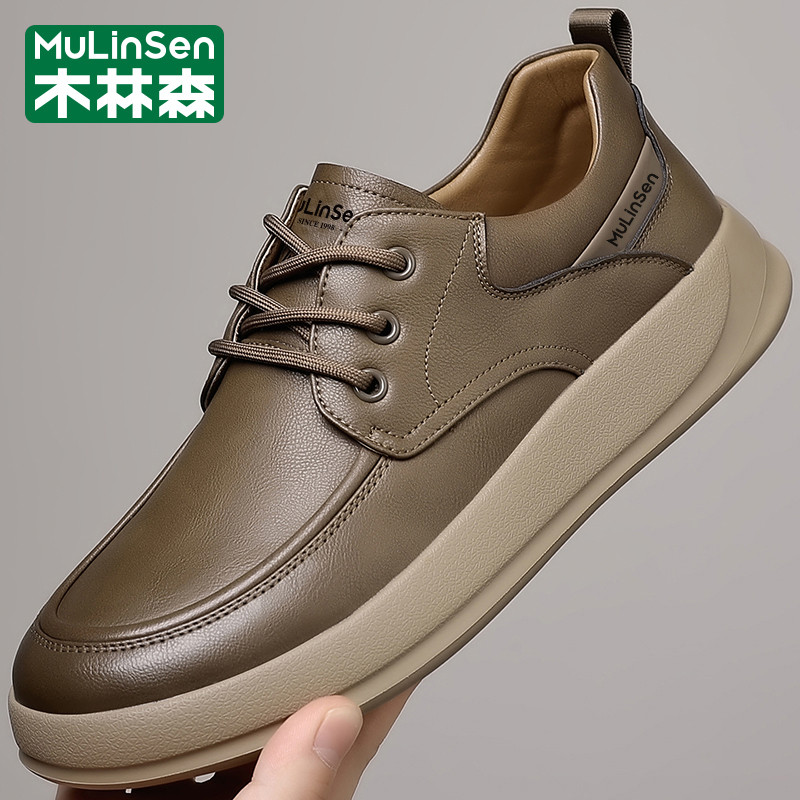 木林森皮鞋男2025新款冬季头层牛皮休闲商务软底防滑驾车爸爸板鞋