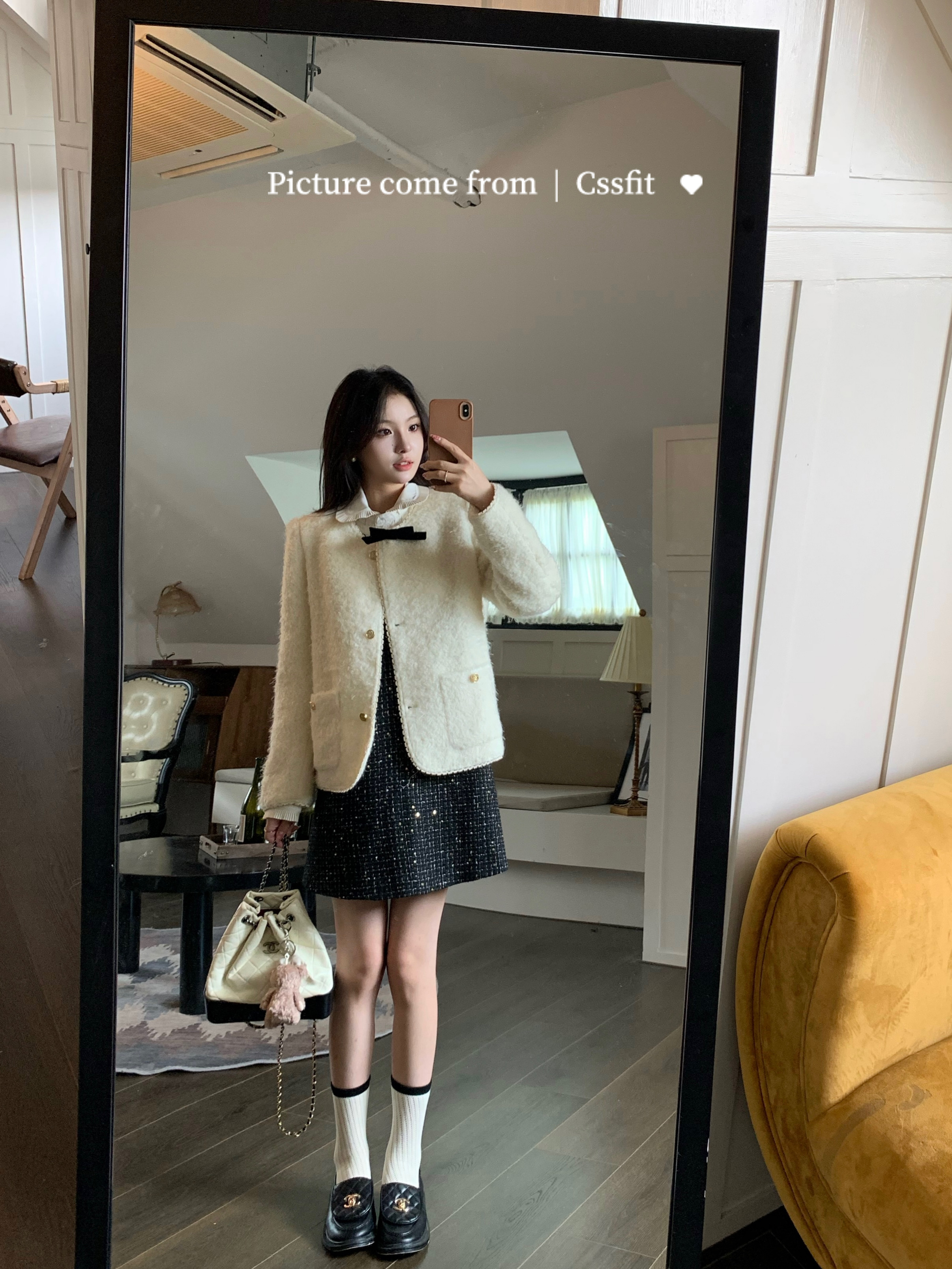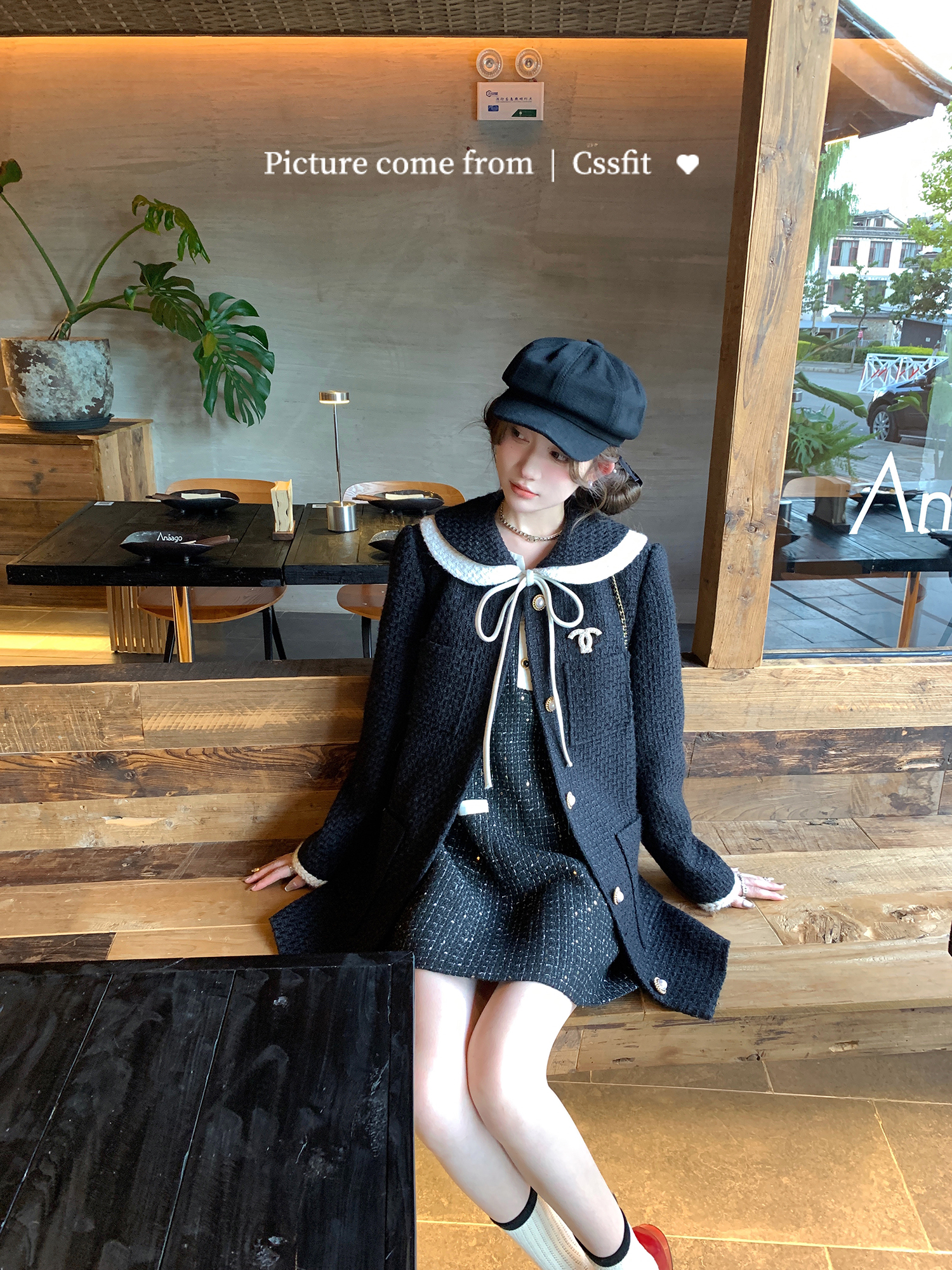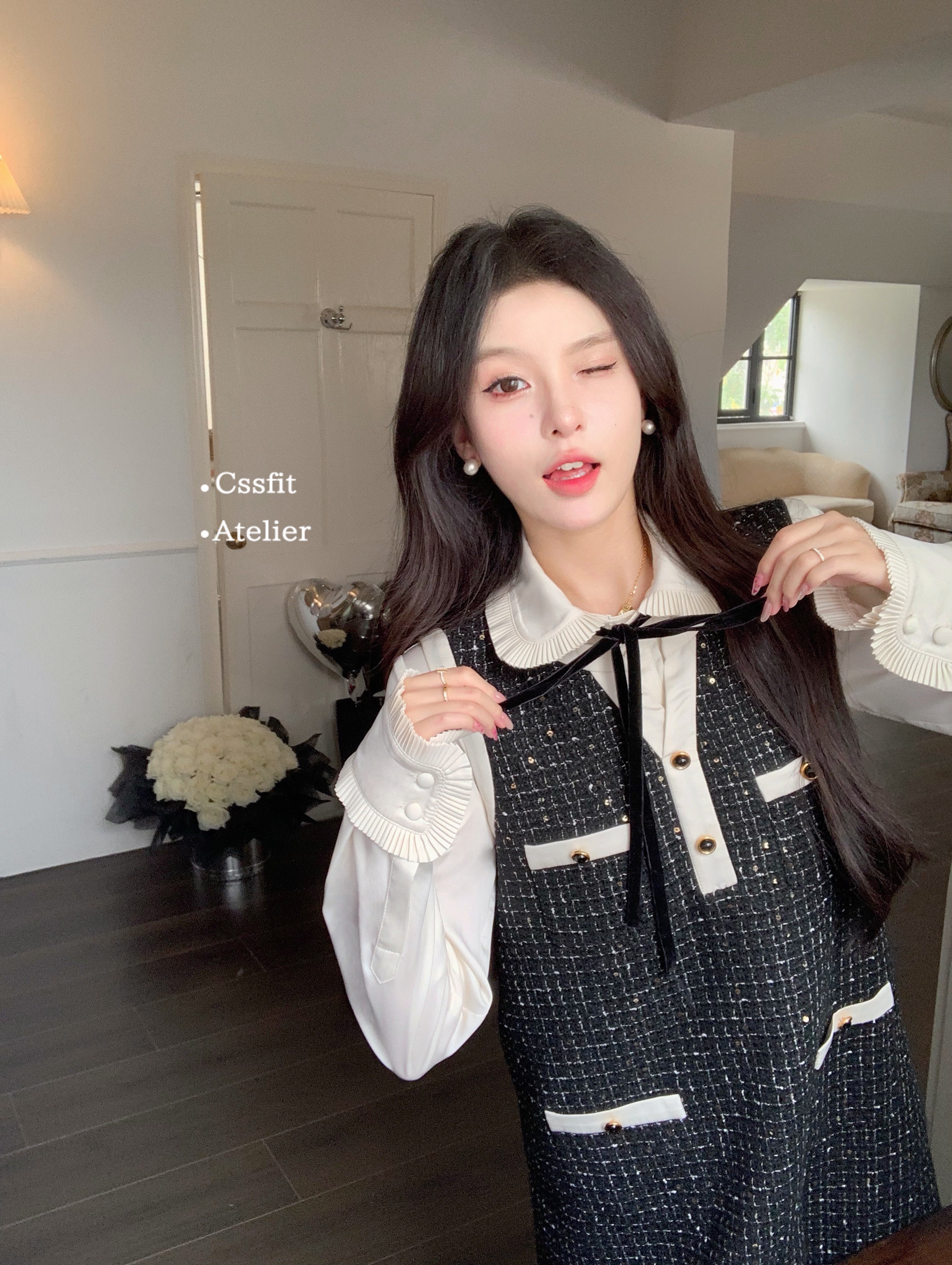 迟伞伞 典藏版香香 bling闪闪细格拼色小香风背心裙黑色连衣裙女