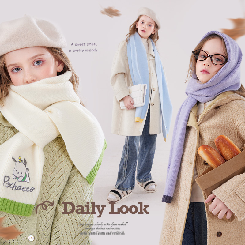 库洛米儿童围巾秋冬款宝宝围脖女童防风保暖冬季户外护颈针织脖套