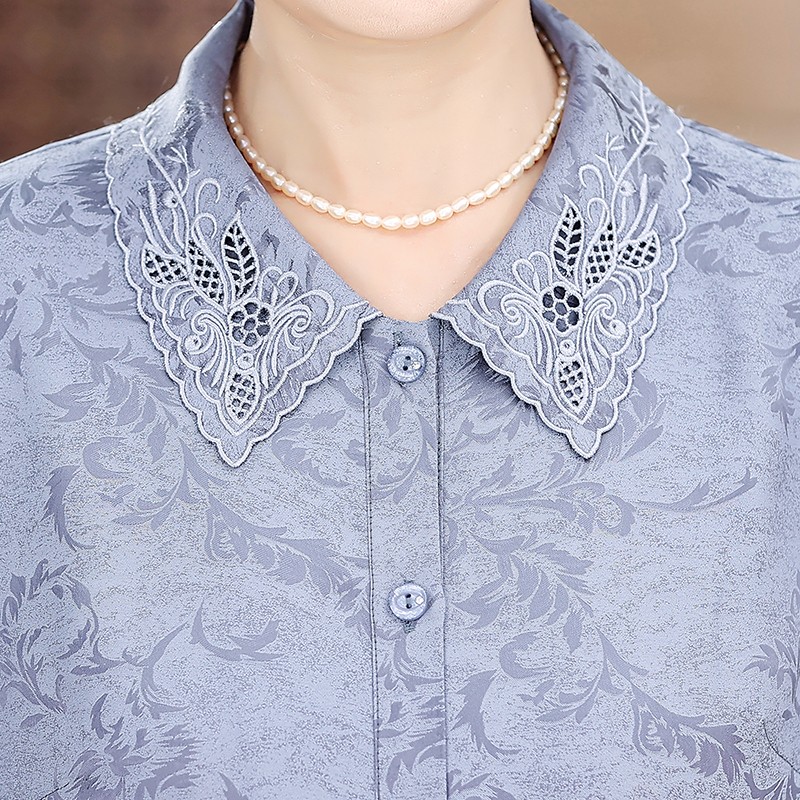中老年人夏装衬衫女奶奶七分袖妈妈2024新款太太洋气翻领老人衣服