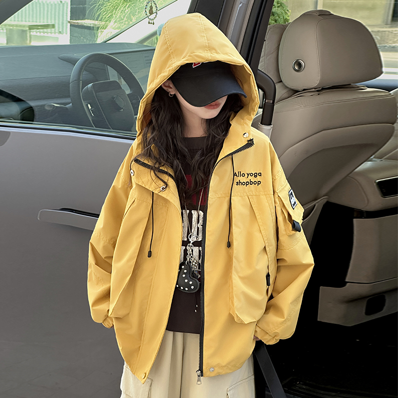 女童外套春秋款2025新款洋气韩版连帽三防冲锋衣女孩中大童风衣潮
