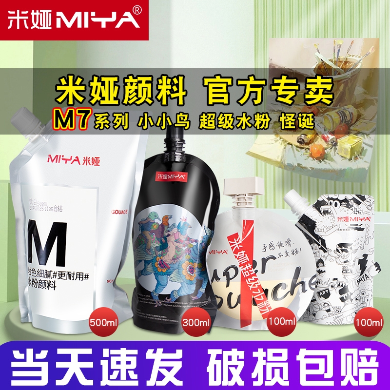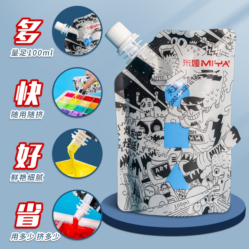 米娅水粉M7颜料补充装颜料补充包米亚100ml袋装色彩重彩S7樱花红美术生专用色彩白色钛白挤压式300ml珍珠白