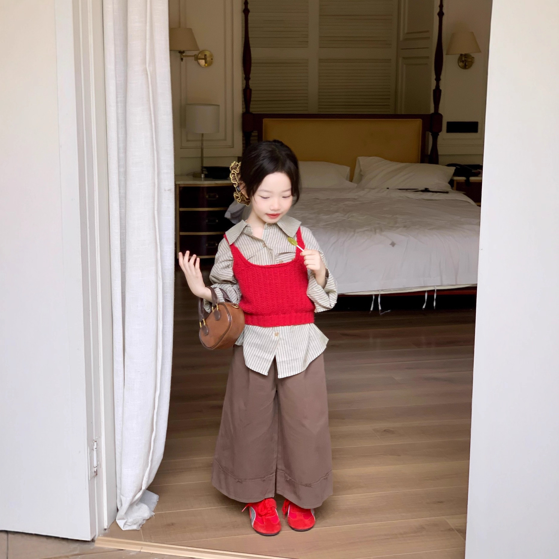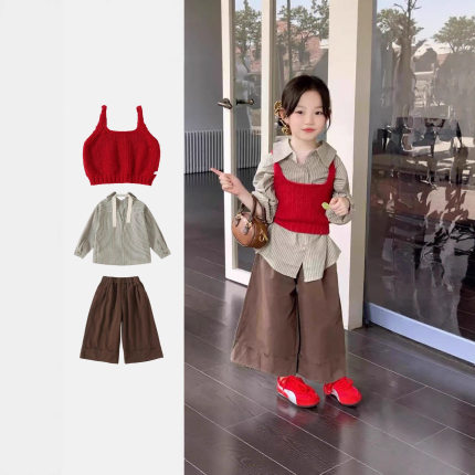 韩系2025秋季新款短款百搭纯色毛衣女童背心针织吊带上衣