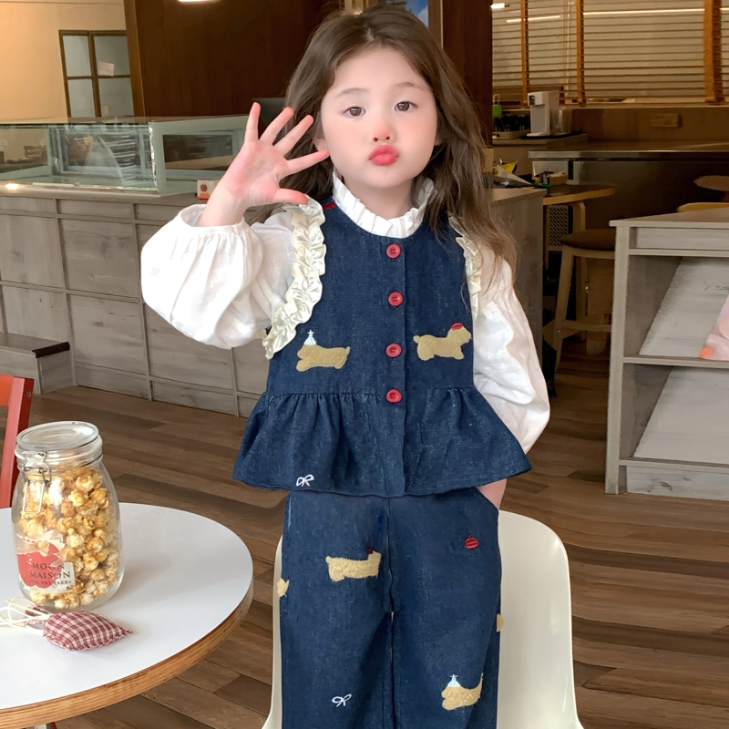 女童春秋款套装2025新款洋气时髦儿童牛仔小狗宝宝秋季秋装三件套