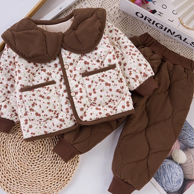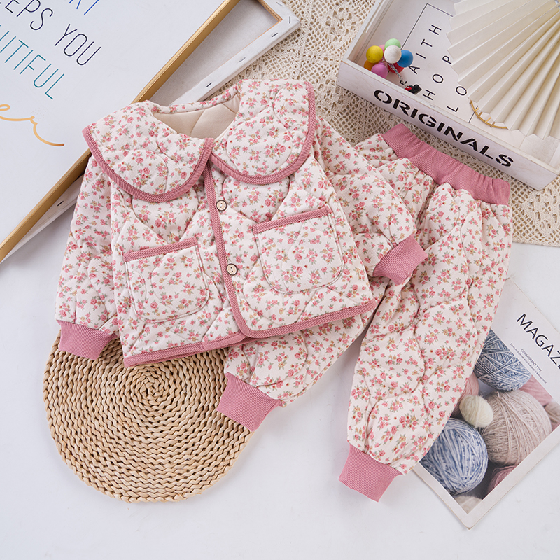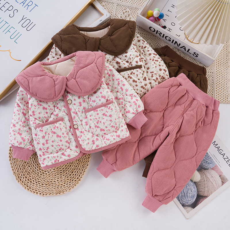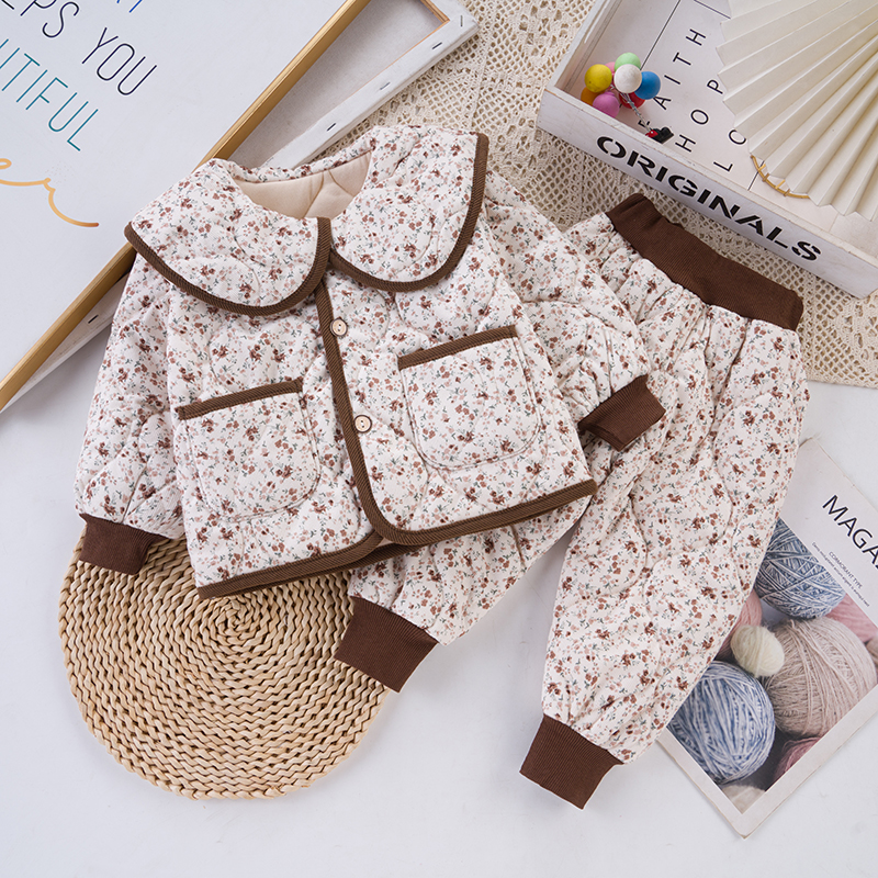 秋季冬季男童女童棉衣棉裤夹棉套装儿童宝宝时尚洋气碎花外穿加厚