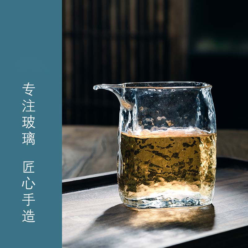 古法手工扁口冰川纹理公道杯日式玻璃茶海分茶器 鹰嘴断水好
