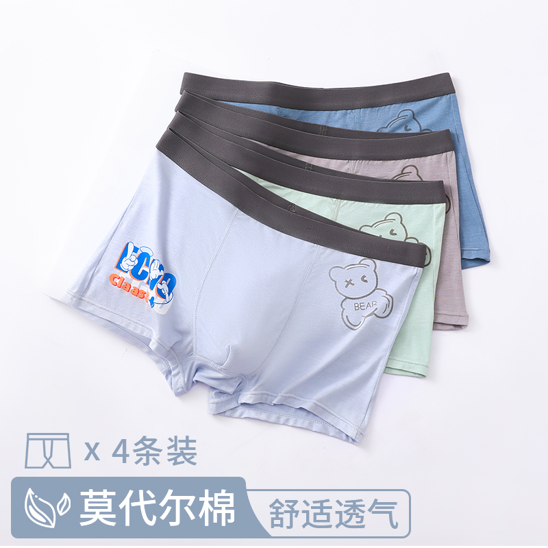 男童内裤莫代尔儿童四角裤夏季青少年发育期中大童男孩平角短裤薄