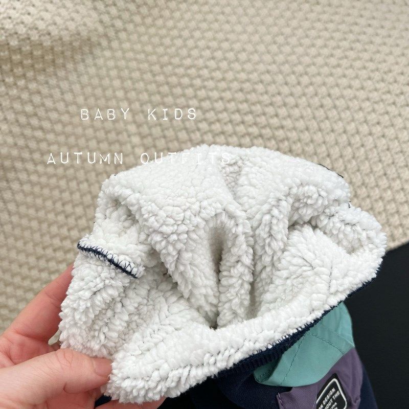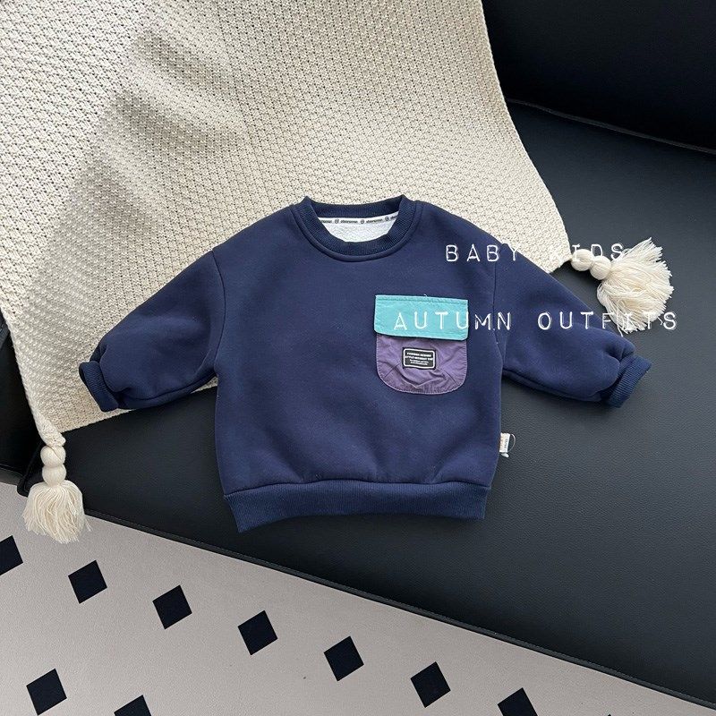 婴幼儿绒加绒加厚套头卫衣男女宝宝紫色韩版宽松洋气绒衫洋气上衣