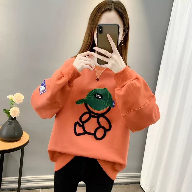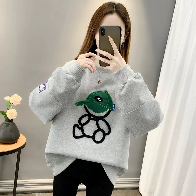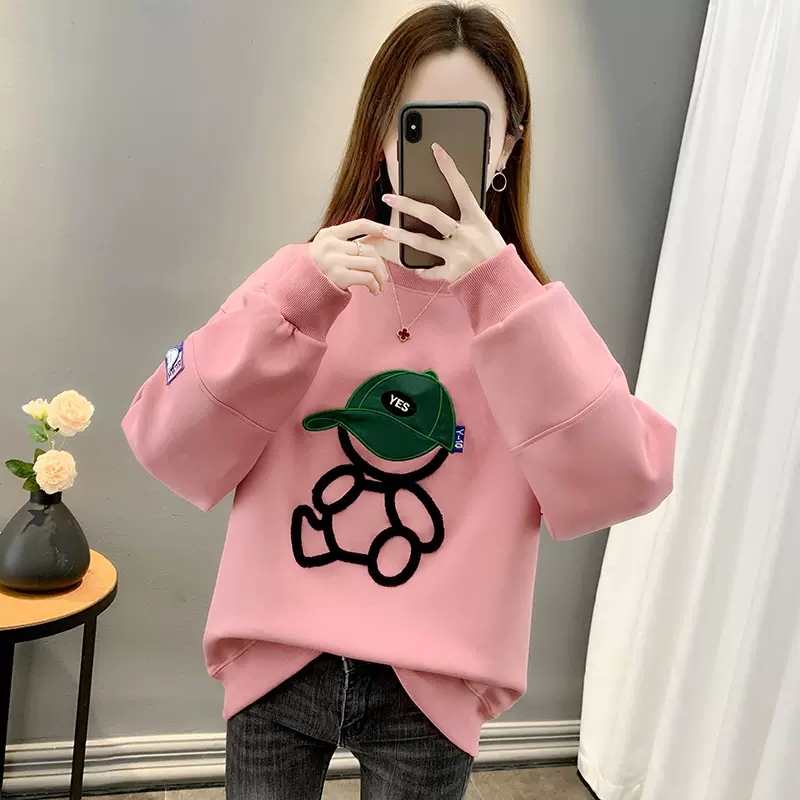 薄款宽松慵懒风刺绣卫衣女