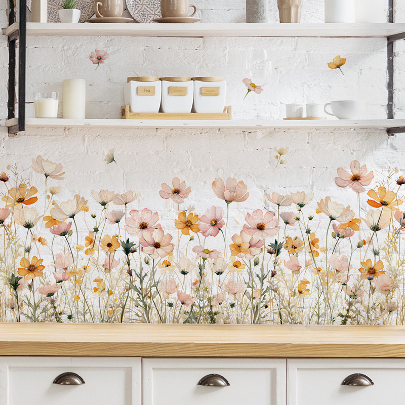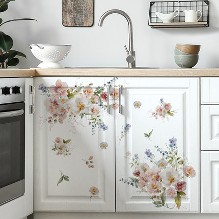 水彩植物花朵墙贴纸防水自粘橱柜玻璃贴画装饰布置小清新客厅卧室