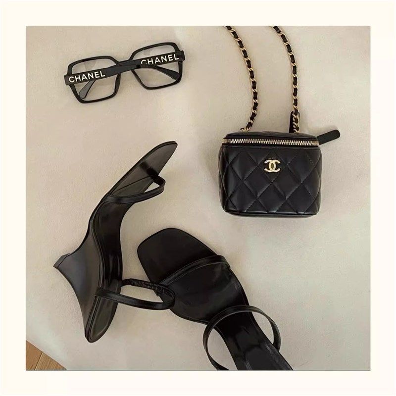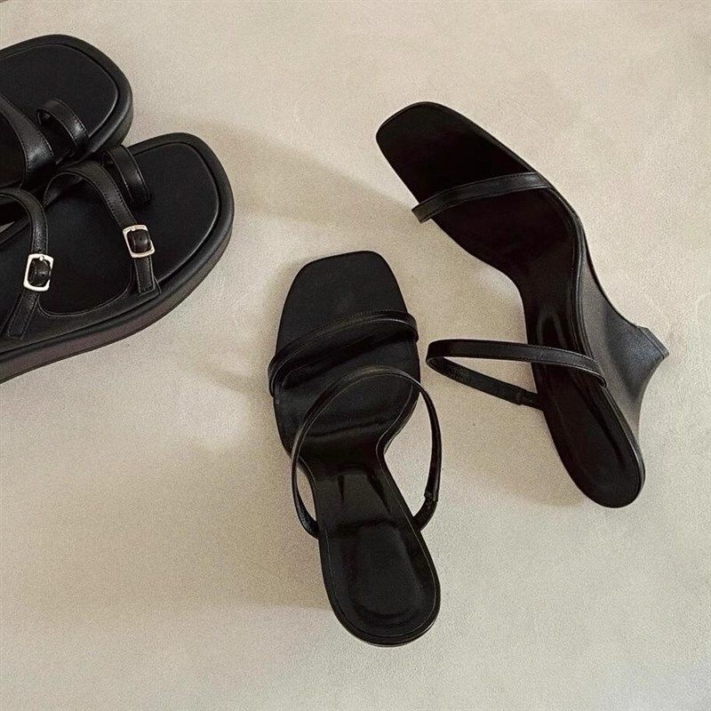 2025春夏新款小众方头露趾坡跟凉鞋女真皮粗跟凉拖鞋气质外穿半拖