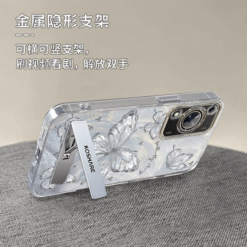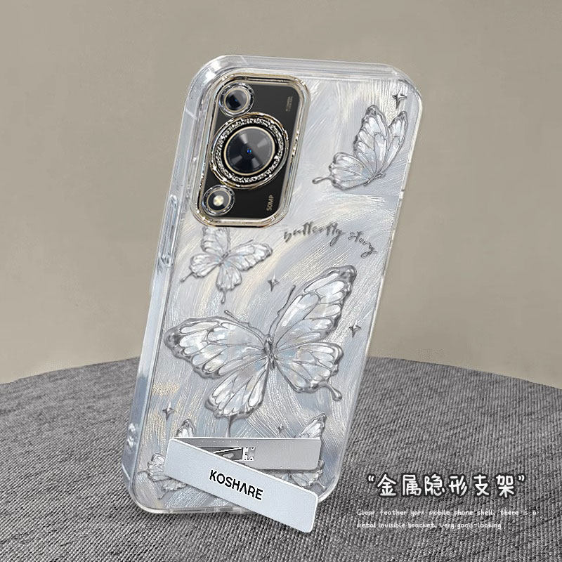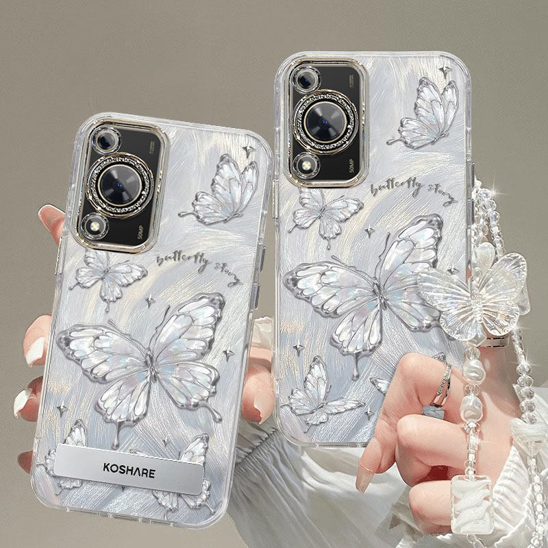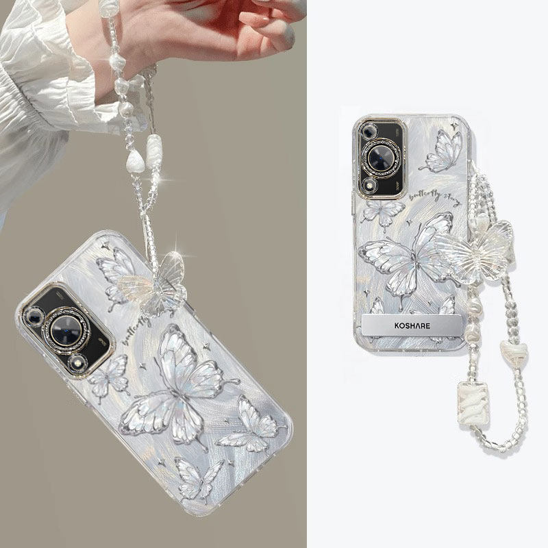 适用梦幻蝴蝶华为畅享70pro手机壳60X电镀50羽纱hi畅享70plus自带挂绳支架女新款防摔保护套全包奢华轻奢风