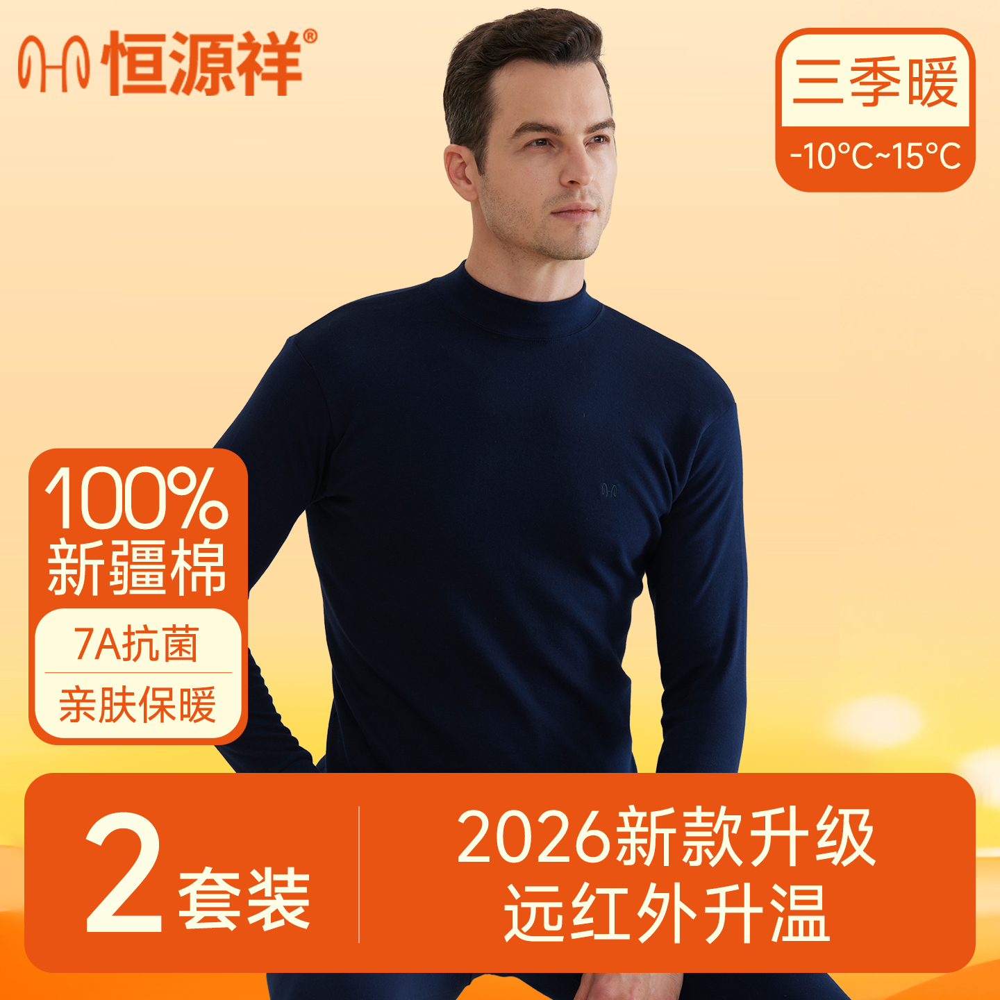 恒源祥男士保暖内衣100%纯棉亲肤打底棉毛衫秋衣秋裤薄款2025新款