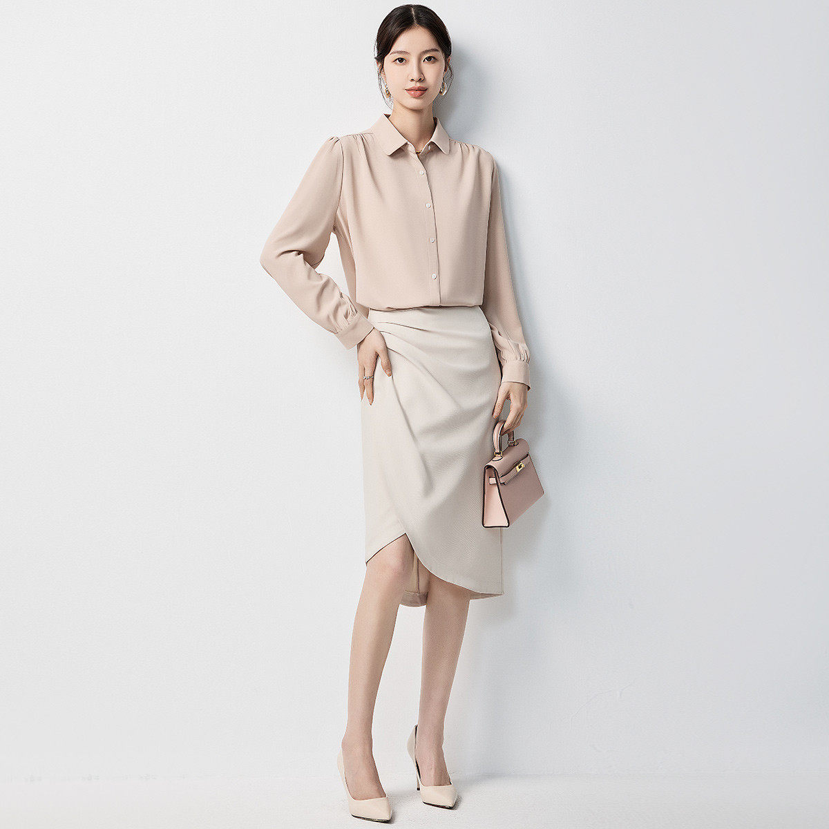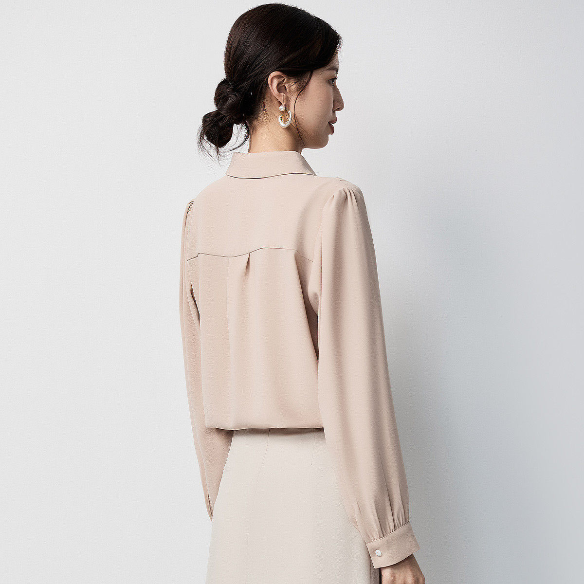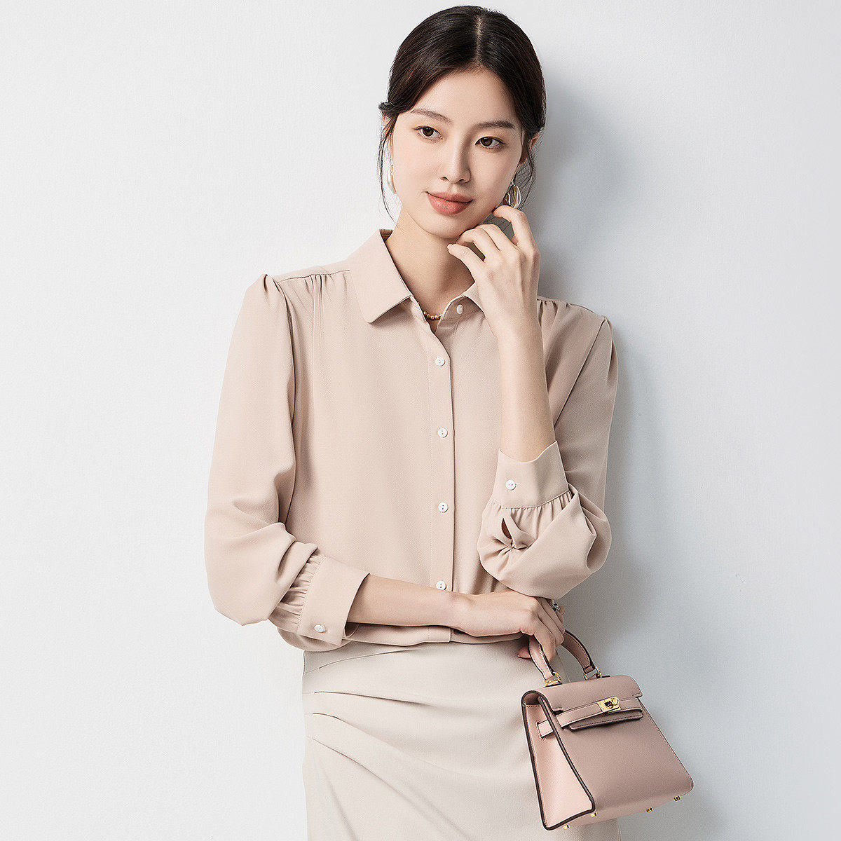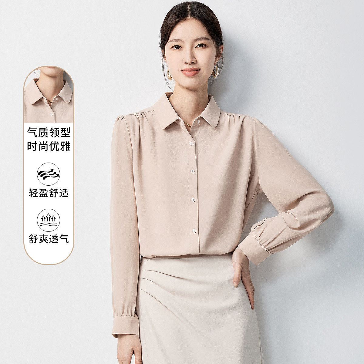罗蒙春秋雪纺衬女士长袖衬衫时尚设计感纯色简约通勤职业开衫衬衣