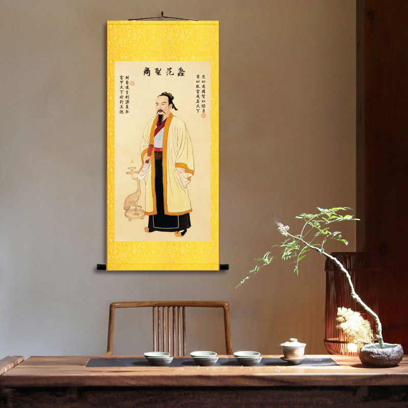 商圣范蠡画像陶朱公商训店铺办公室挂画财神生R意经风水玄关装饰