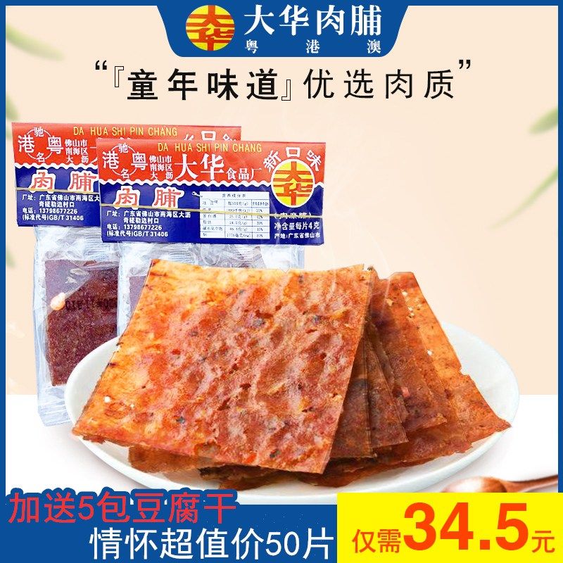 广东特产港粤大华肉脯手撕猪肉干50片装8090儿时怀旧童年休闲零食