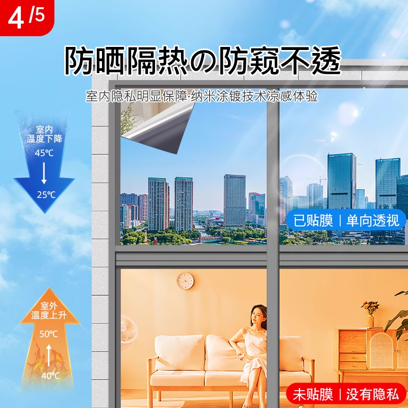 静电单向贴膜玻璃防窥膜卫生间窗户防走光家用隐私膜透光不透人