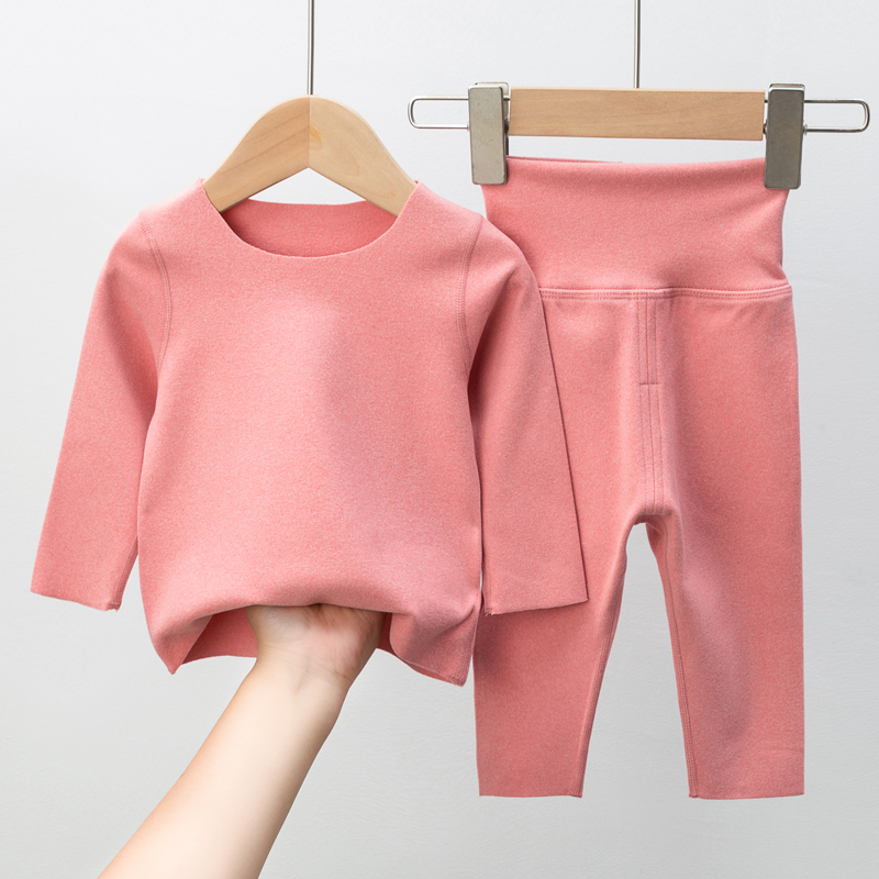 宝宝德绒无痕内衣套装秋冬加绒婴儿高腰护肚睡衣自发热保暖衣秋衣