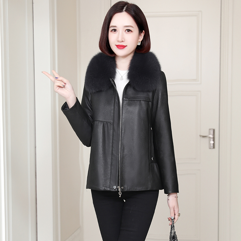 傲冬新款海宁皮衣真皮羽绒服女短款加厚狐狸毛领妈妈皮草韩版外套