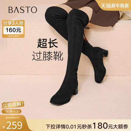 百思图2025冬季新款粗跟过膝靴弹力瘦瘦靴粗跟女超长靴CC668DC5
