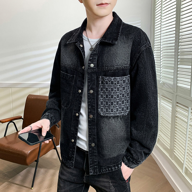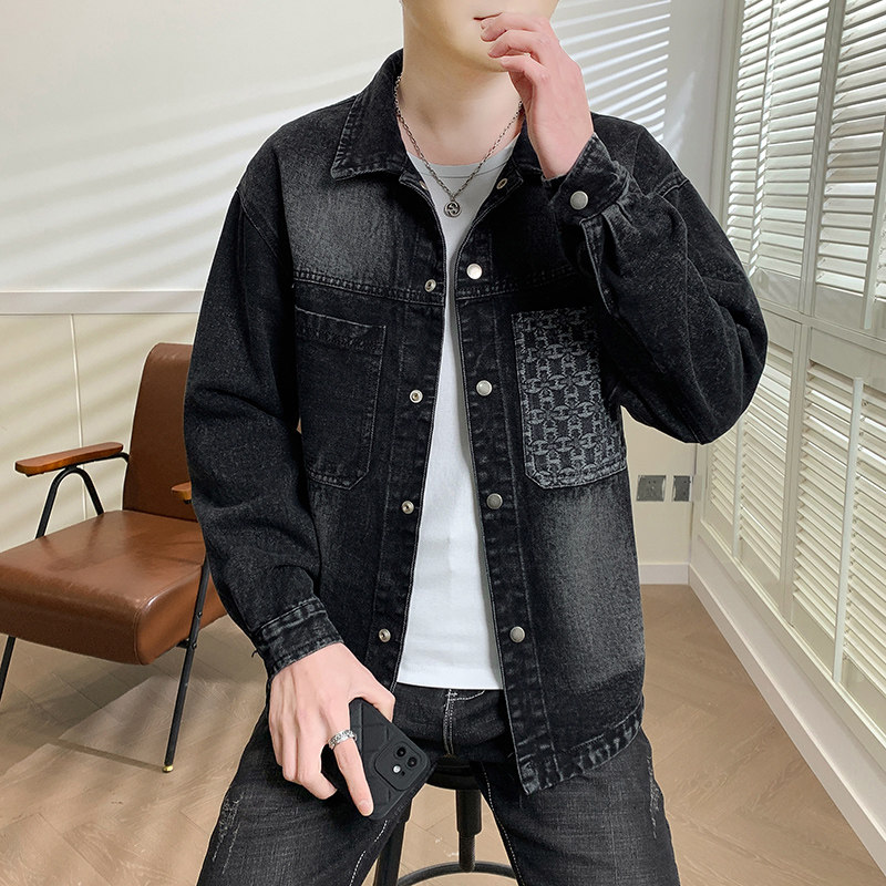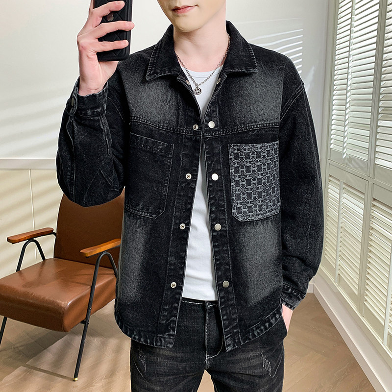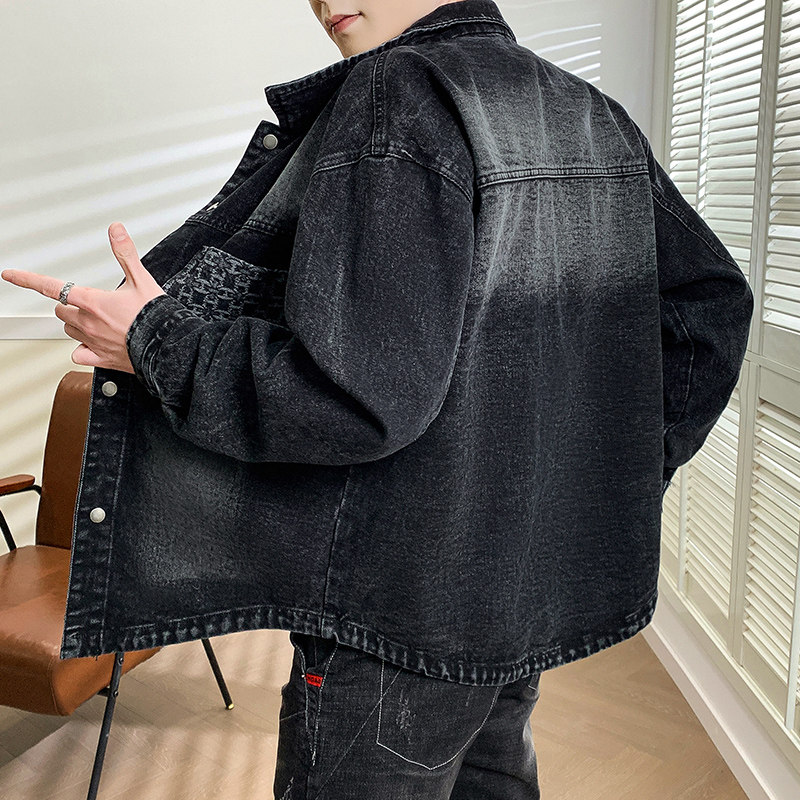 复古做旧牛仔衣男士外套春秋季美式潮牌设计感翻领夹克青少年男装